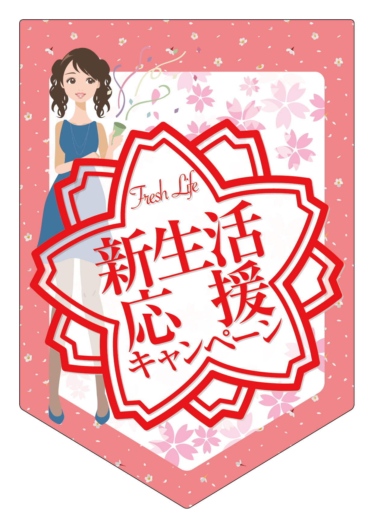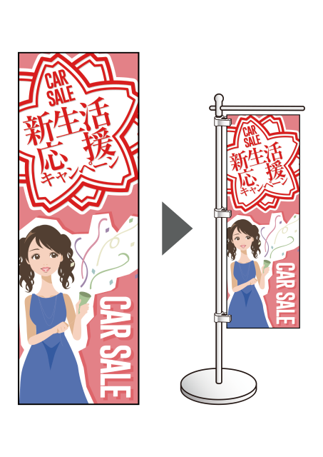 どの位置からでも見えやすいように、『のぼり旗』で"新生活応援キャンペーン"をアピールしましょう。
