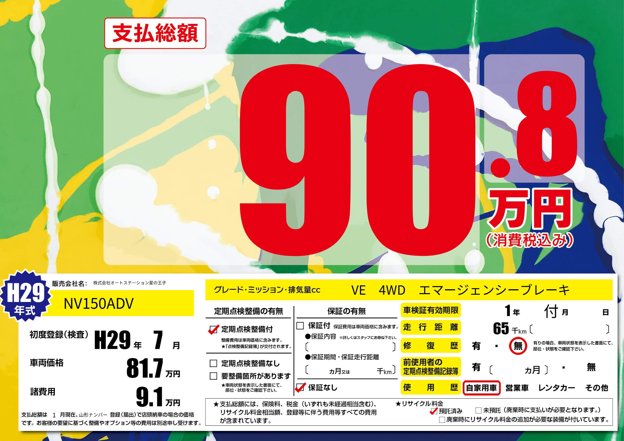 | 走行キロ | 6.5万km | 初年度登録 | H29年7月 |