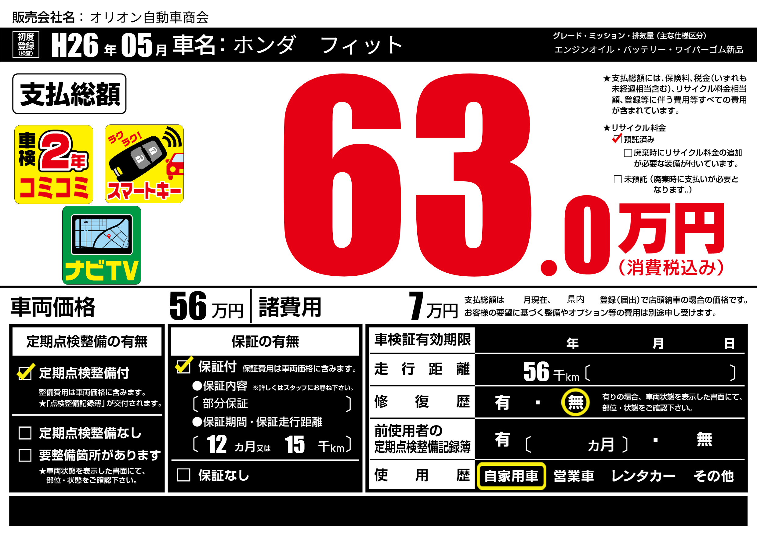 | 走行キロ | 5.6万km | ||