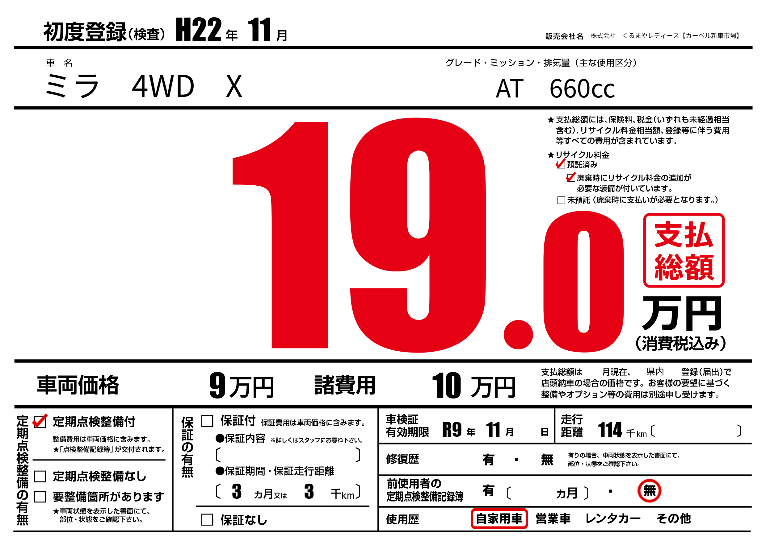 | 定期点検整備 | 定期点検整備あり | ||