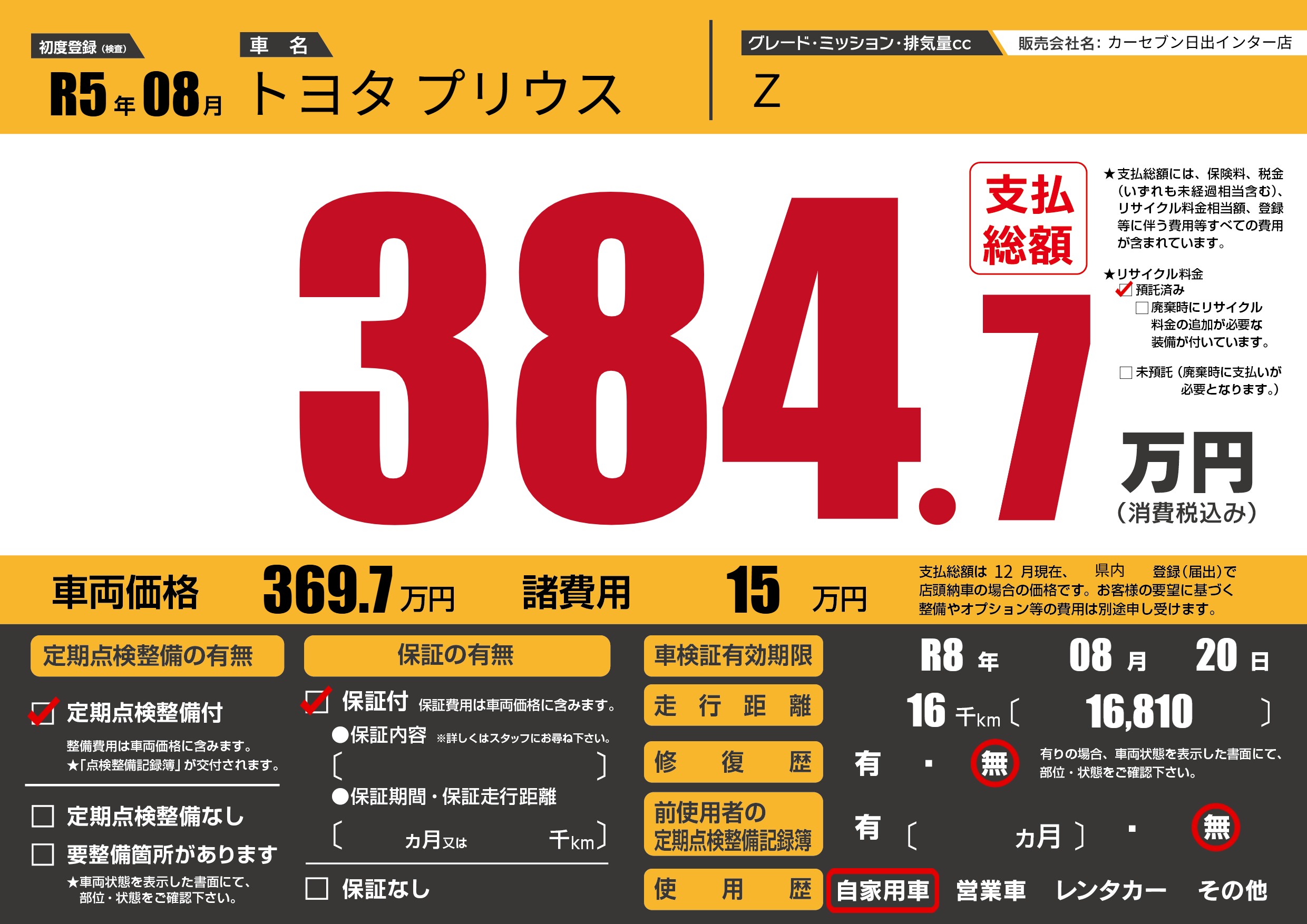 | 車名 | トヨタ プリウス | グレード ミッション 排気量 |