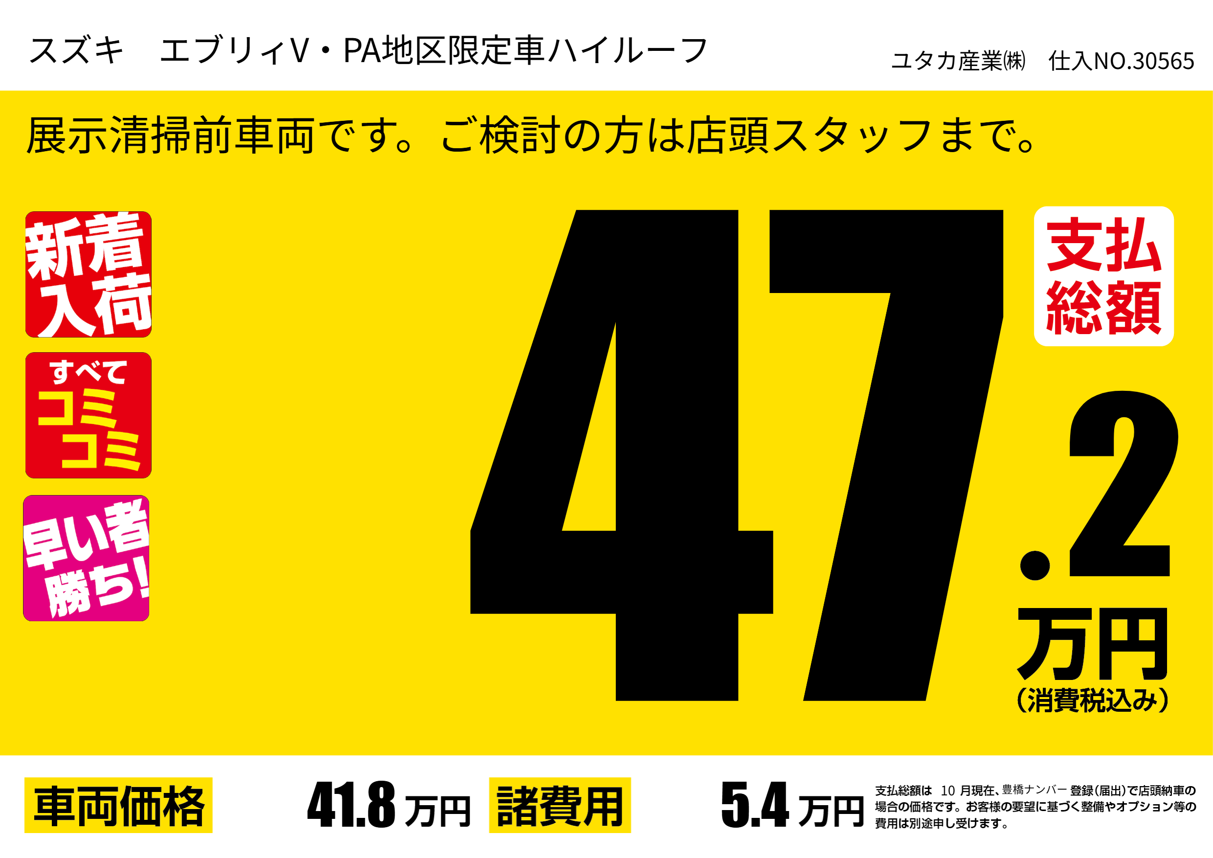 スズキ エブリィV・PA地区限定車ハイルーフ
