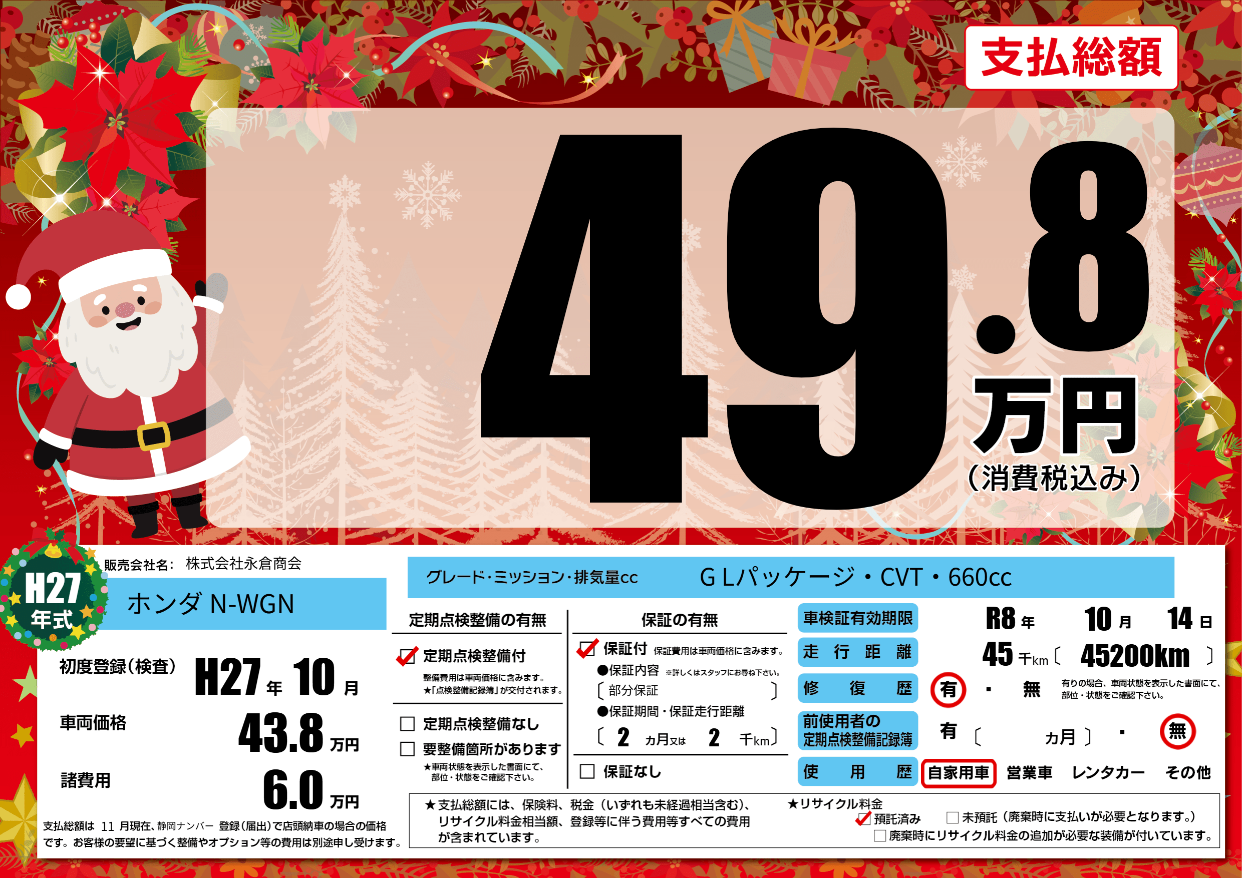 | 車名 | ホンダ N-WGN | グレード ミッション 排気量 |