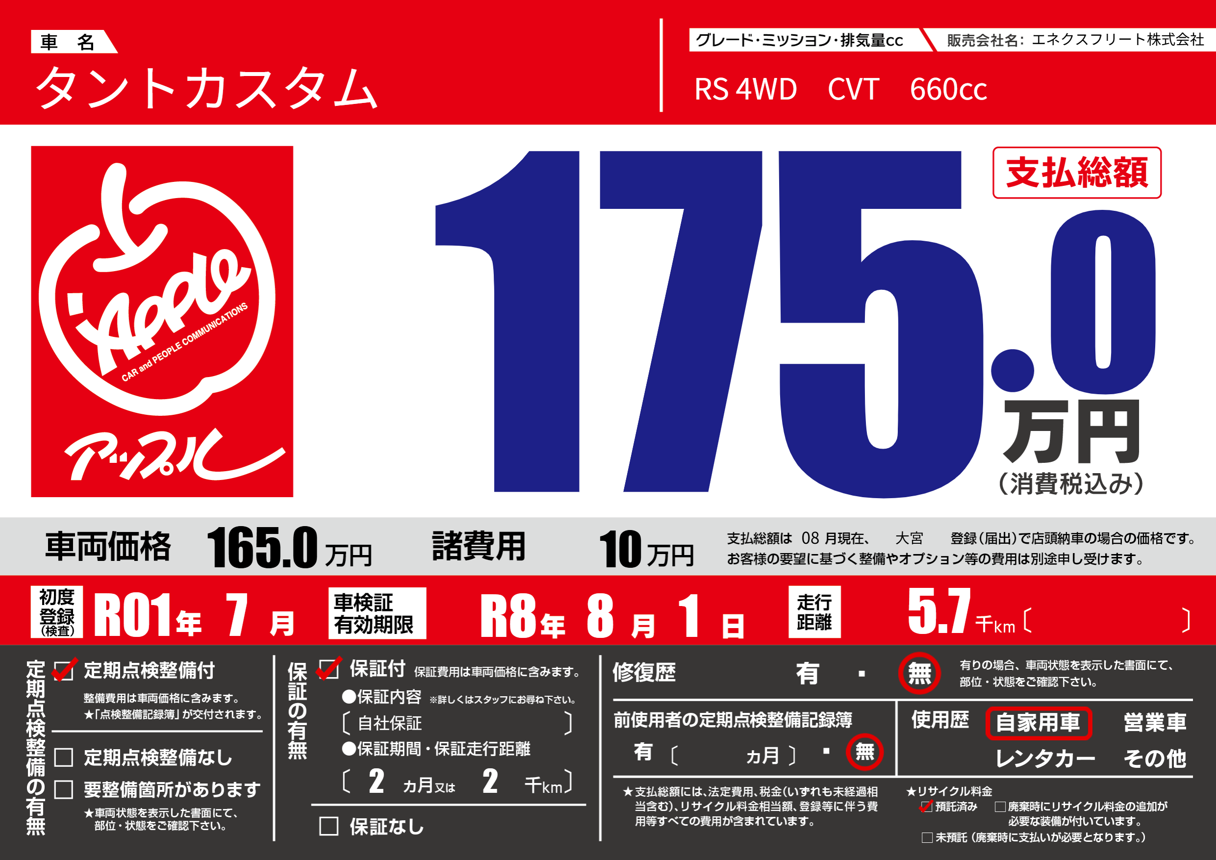 | 車名 | タントカスタム | グレード ミッション 排気量 |