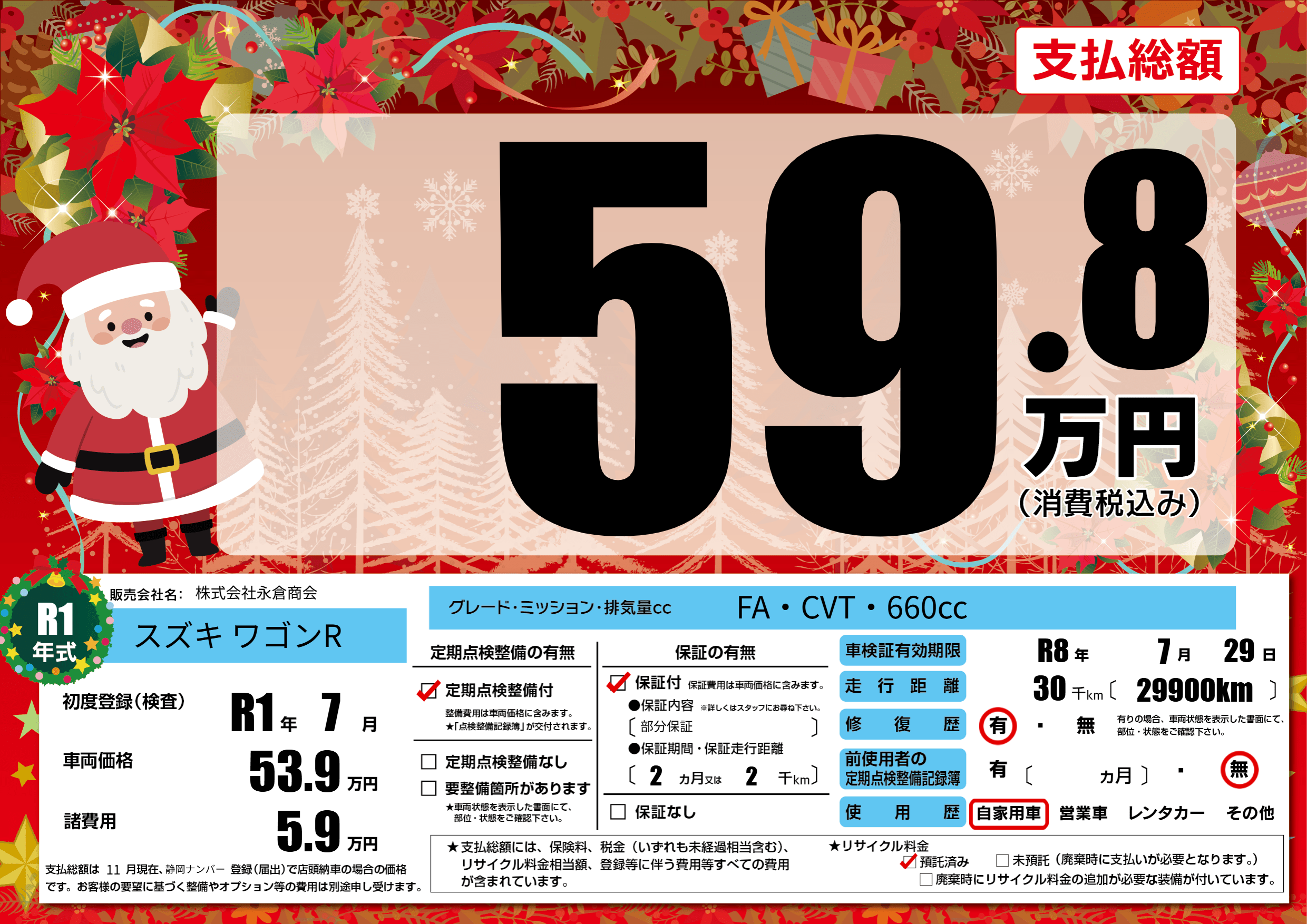 | 走行キロ | 3万km | 初年度登録 | R1年7月 |