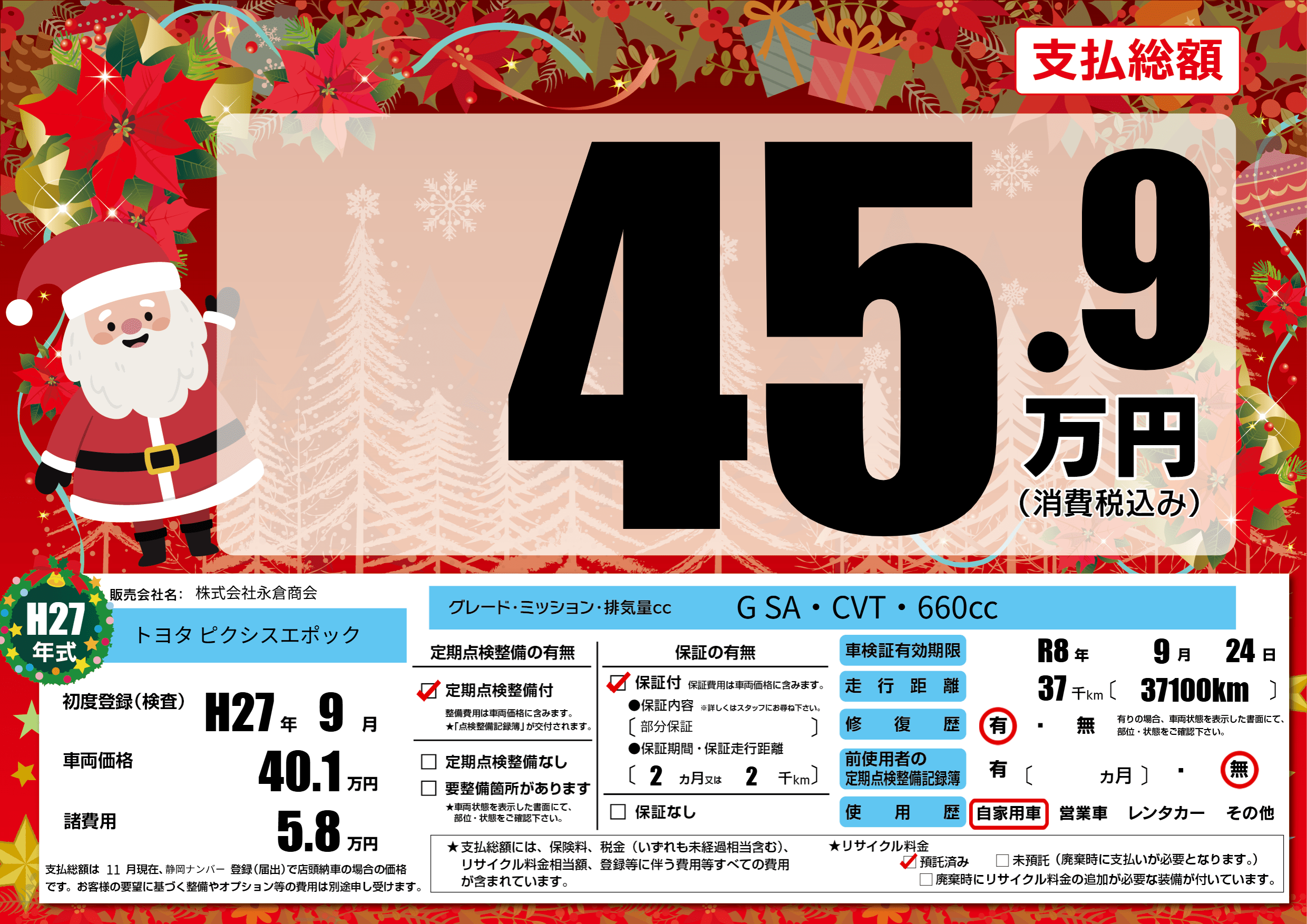 | 車名 | トヨタ ピクシスエポック | グレード ミッション 排気量 |