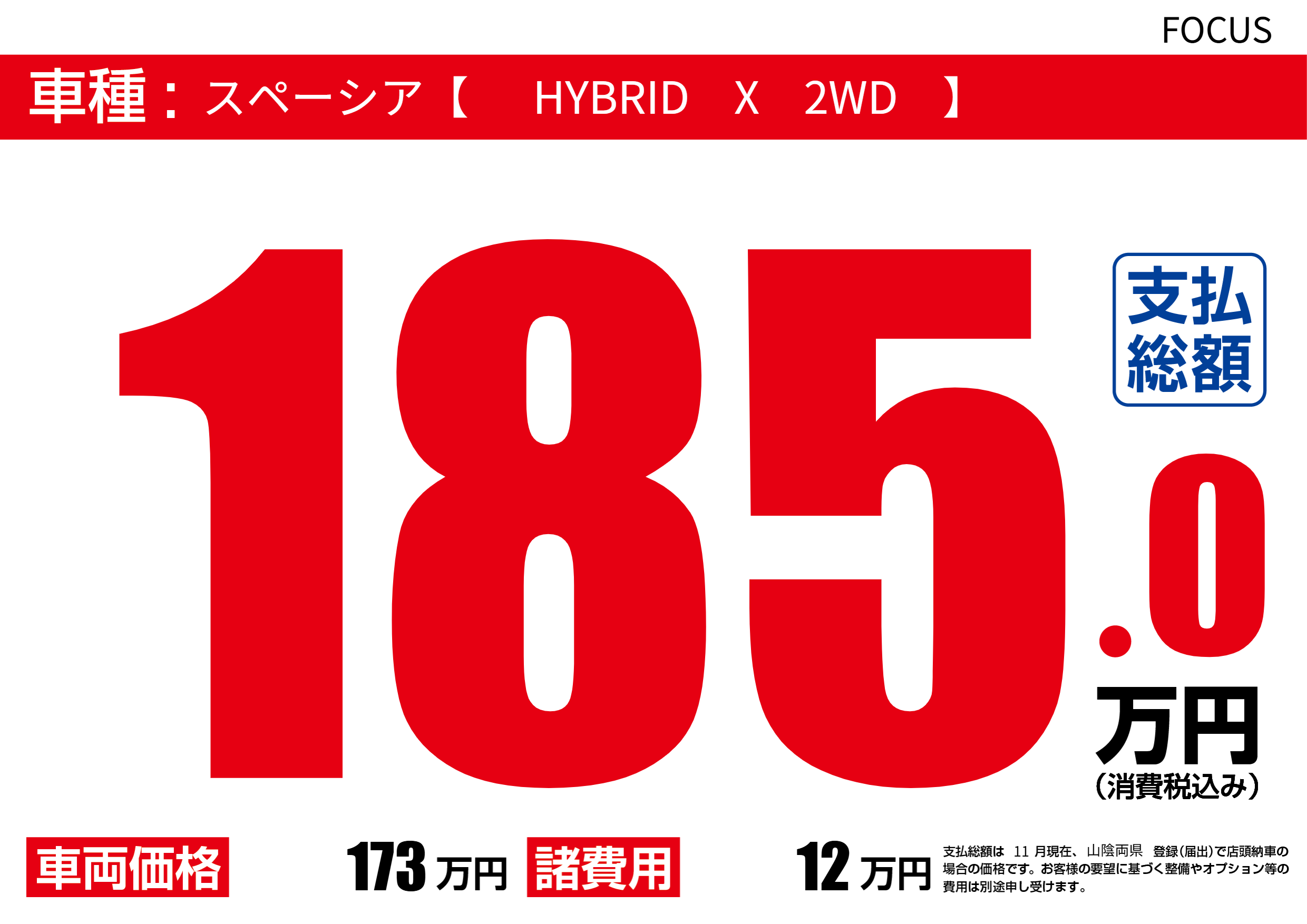 | 車名 | スペーシア【 HYBRID X 2WD 】 | グレード ミッション 排気量 |