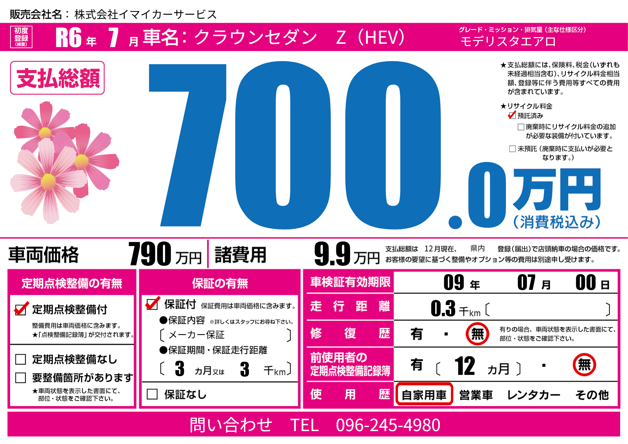 | 車検制限 | 09年 07月 00日 | ||