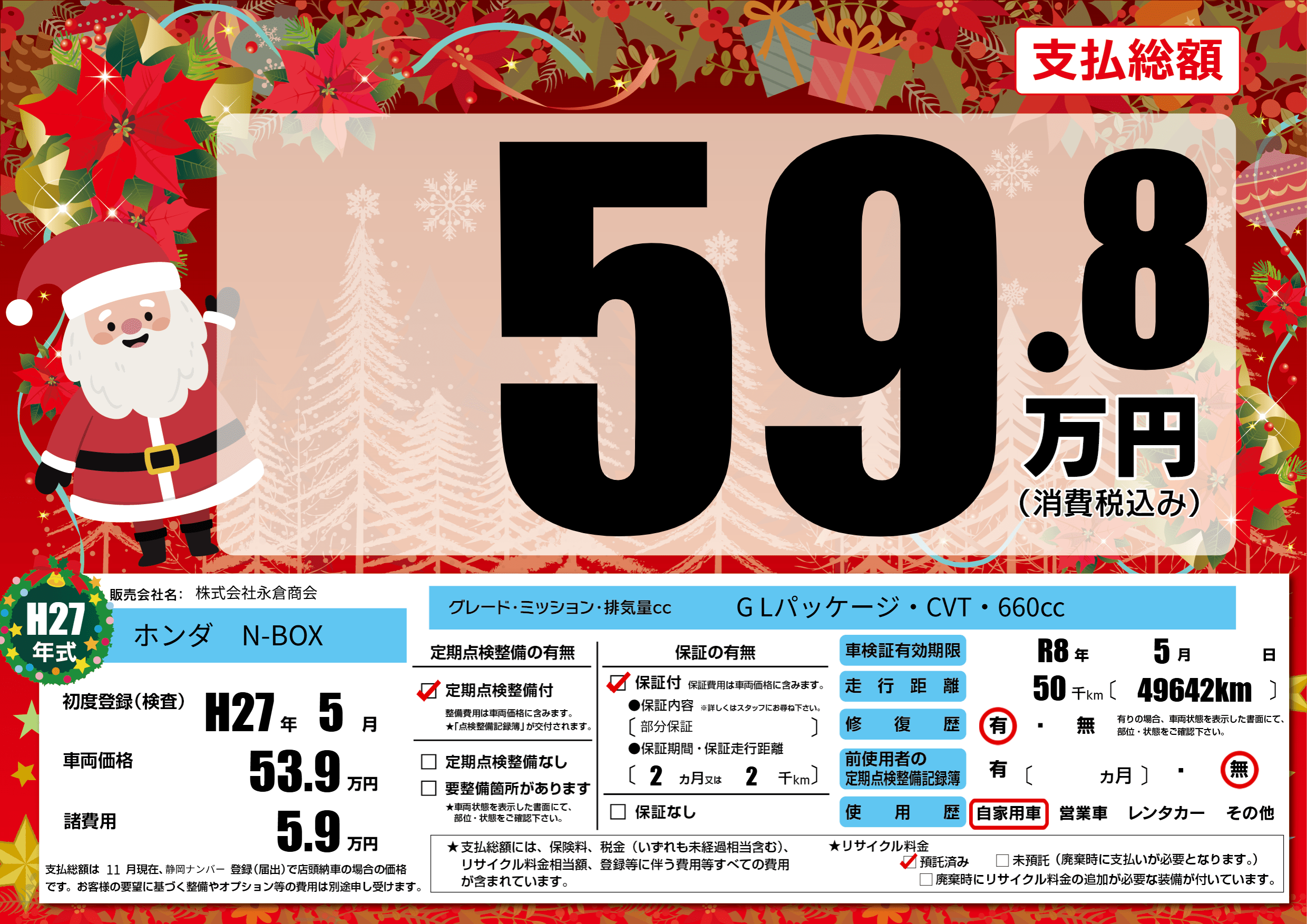 | 走行キロ | 5万km | 初年度登録 | H27年5月 |