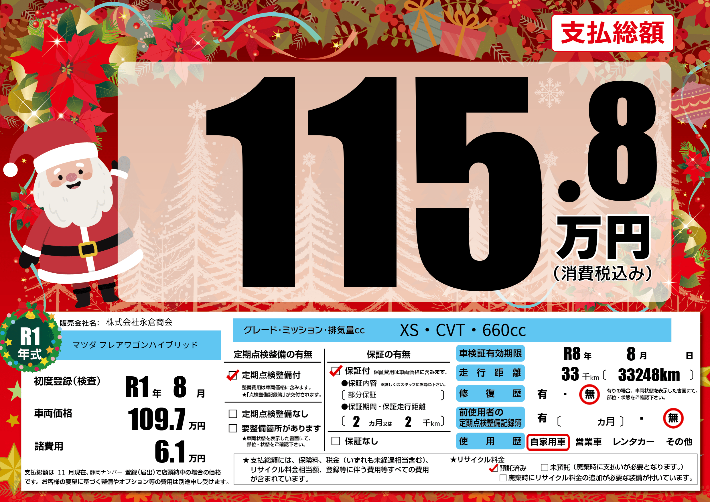 なし | 車検制限 | R8年8月---月 |