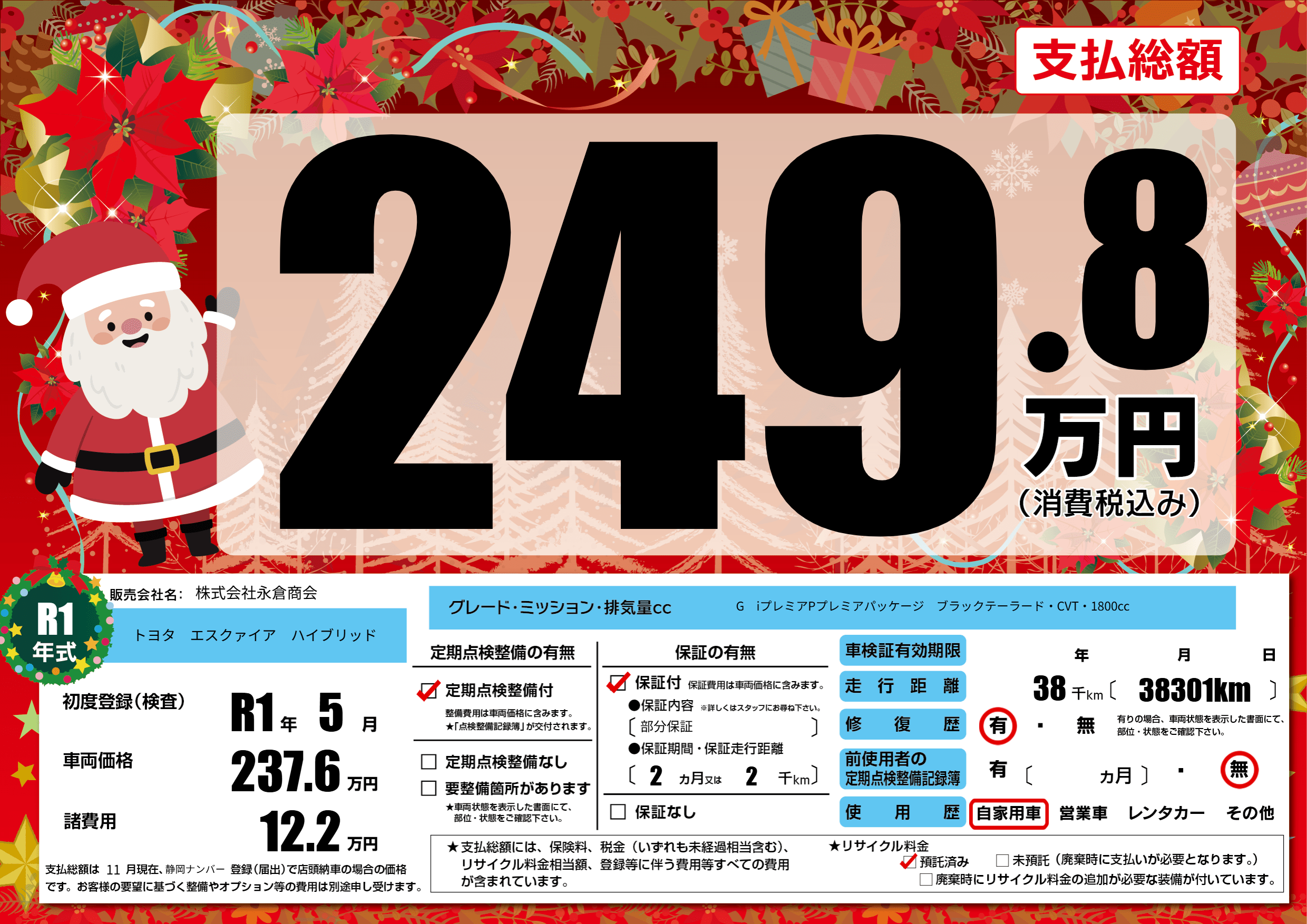 | 車名 | トヨタ エスクァイア ハイブリッド | グレード ミッション 排気量 |
