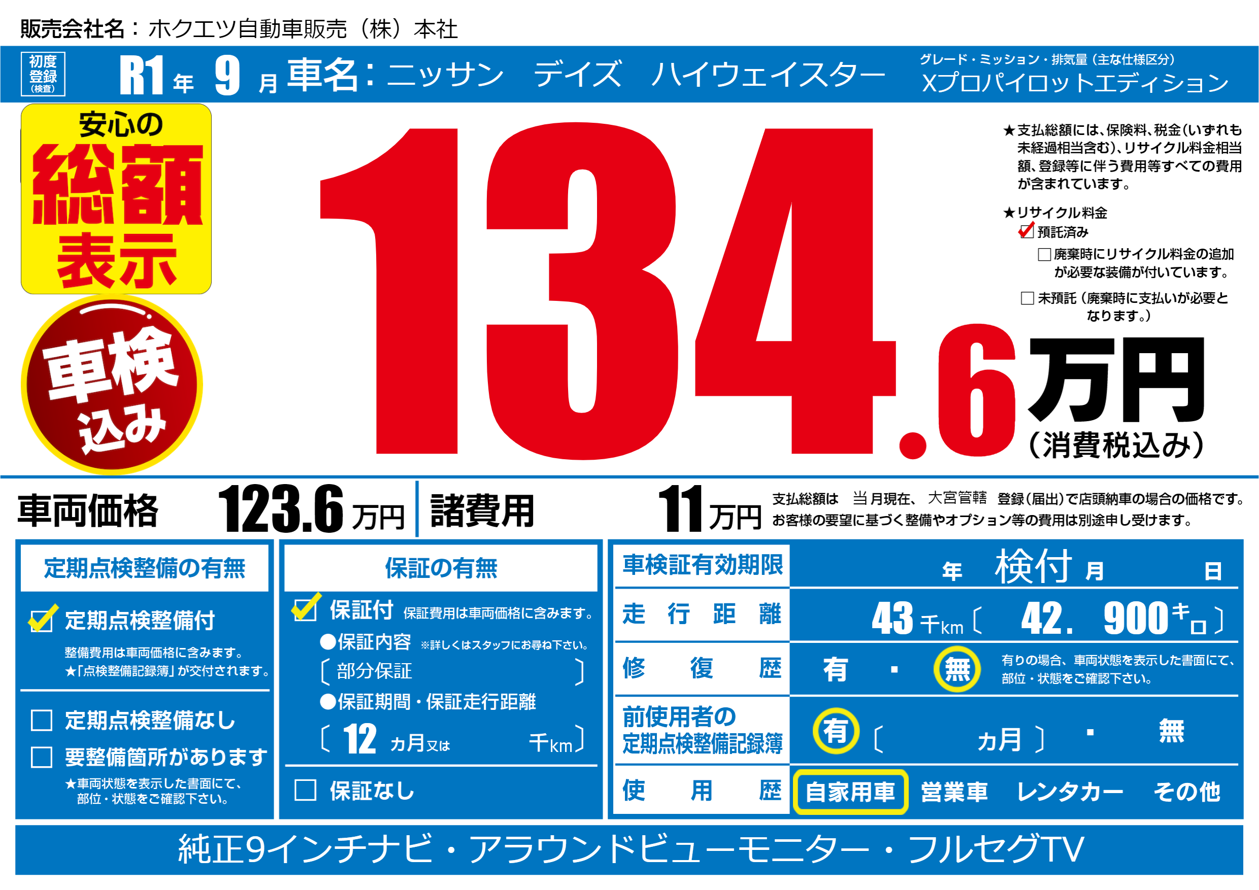 | 初年度登録 | R1年9月 | ||