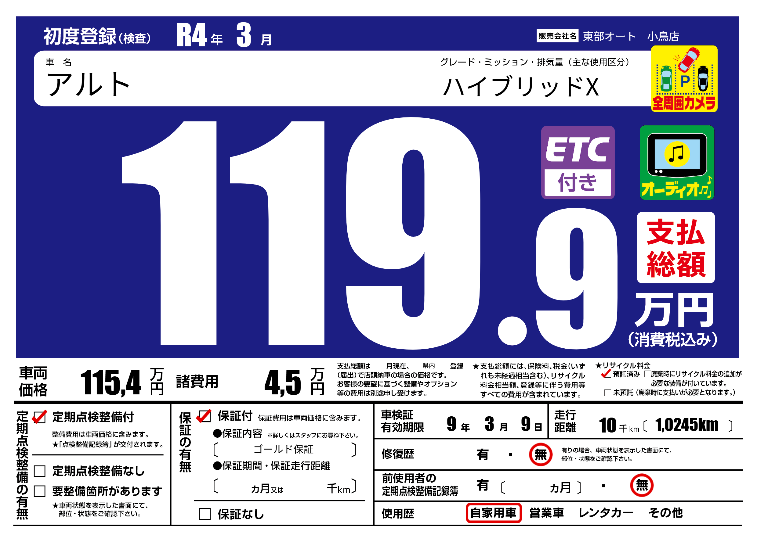 | 定期点検整備 | 定期点検整備あり | ||