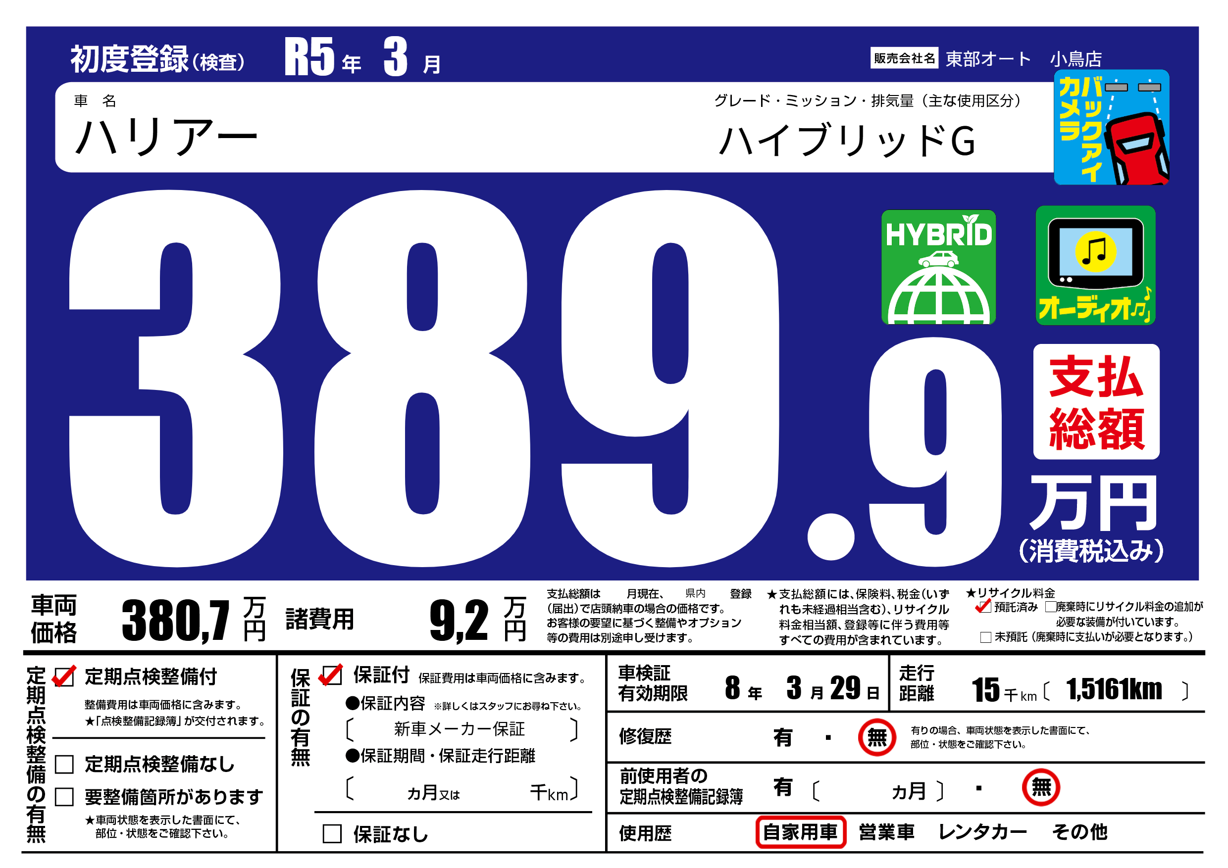 なし | 車検制限 | 8年3月29月 |