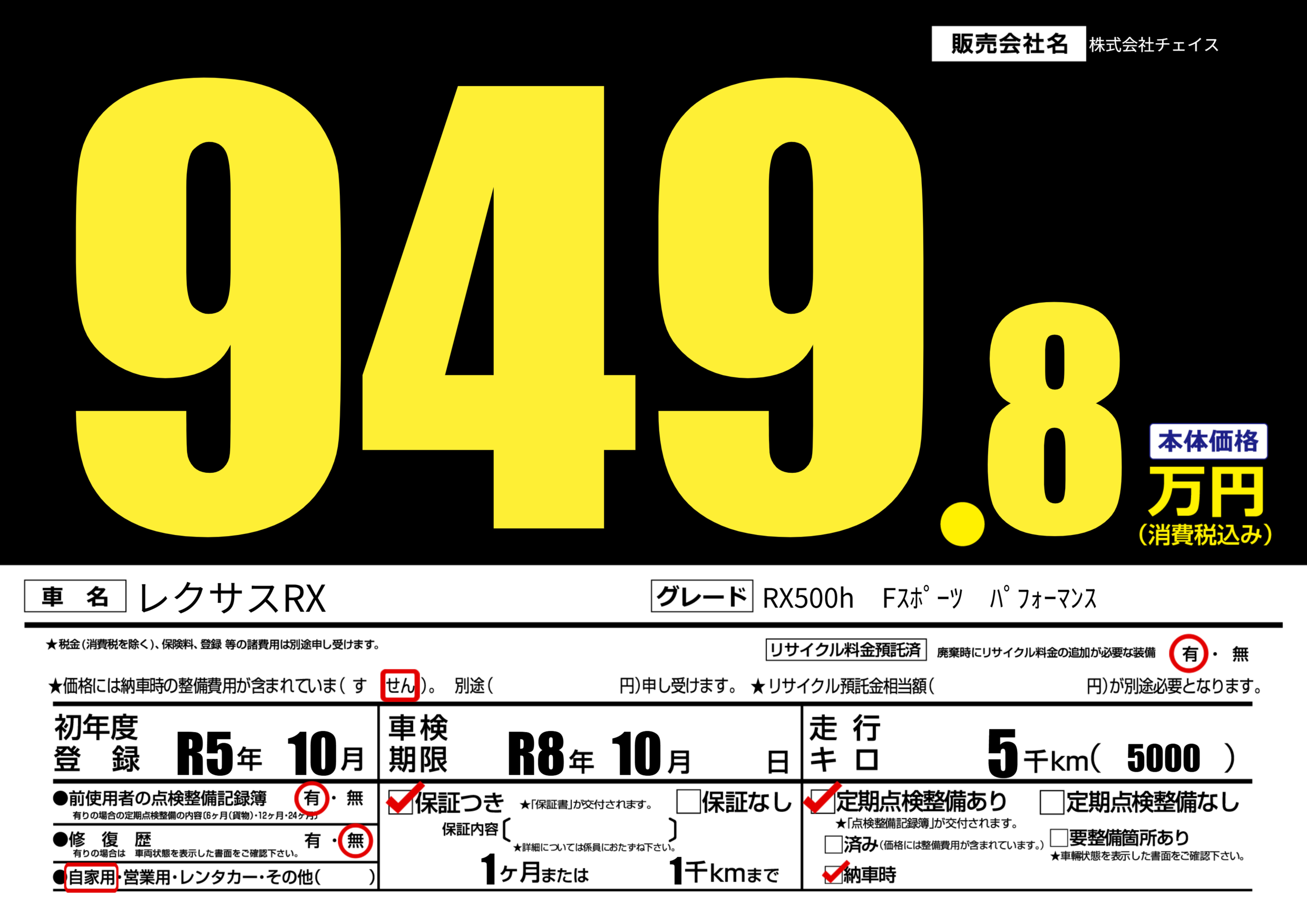 | 車検制限 | R8年 10月 - 日 | ||