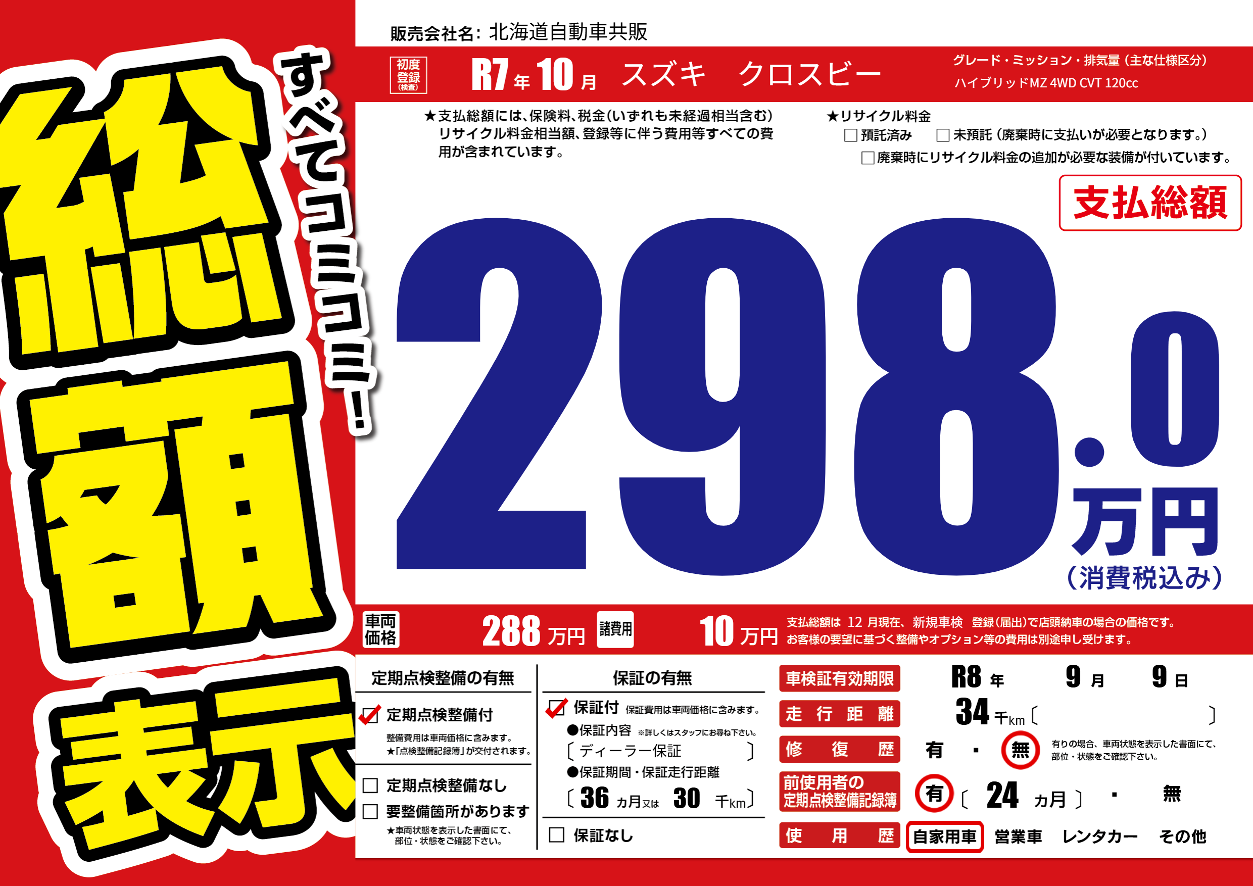| 車検制限 | R8年 9月 9日 | ||