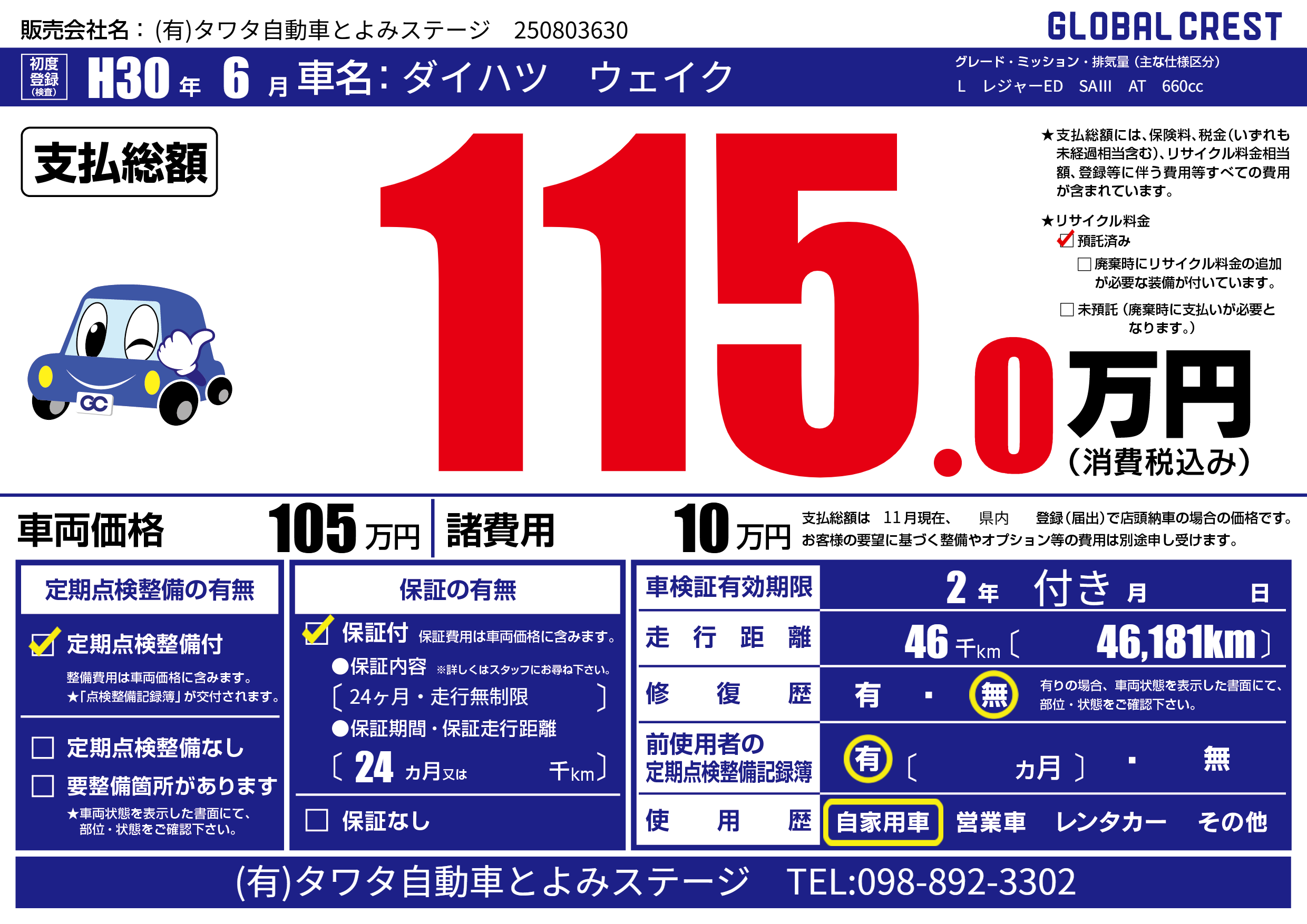 | 定期点検整備 | 定期点検整備あり | ||