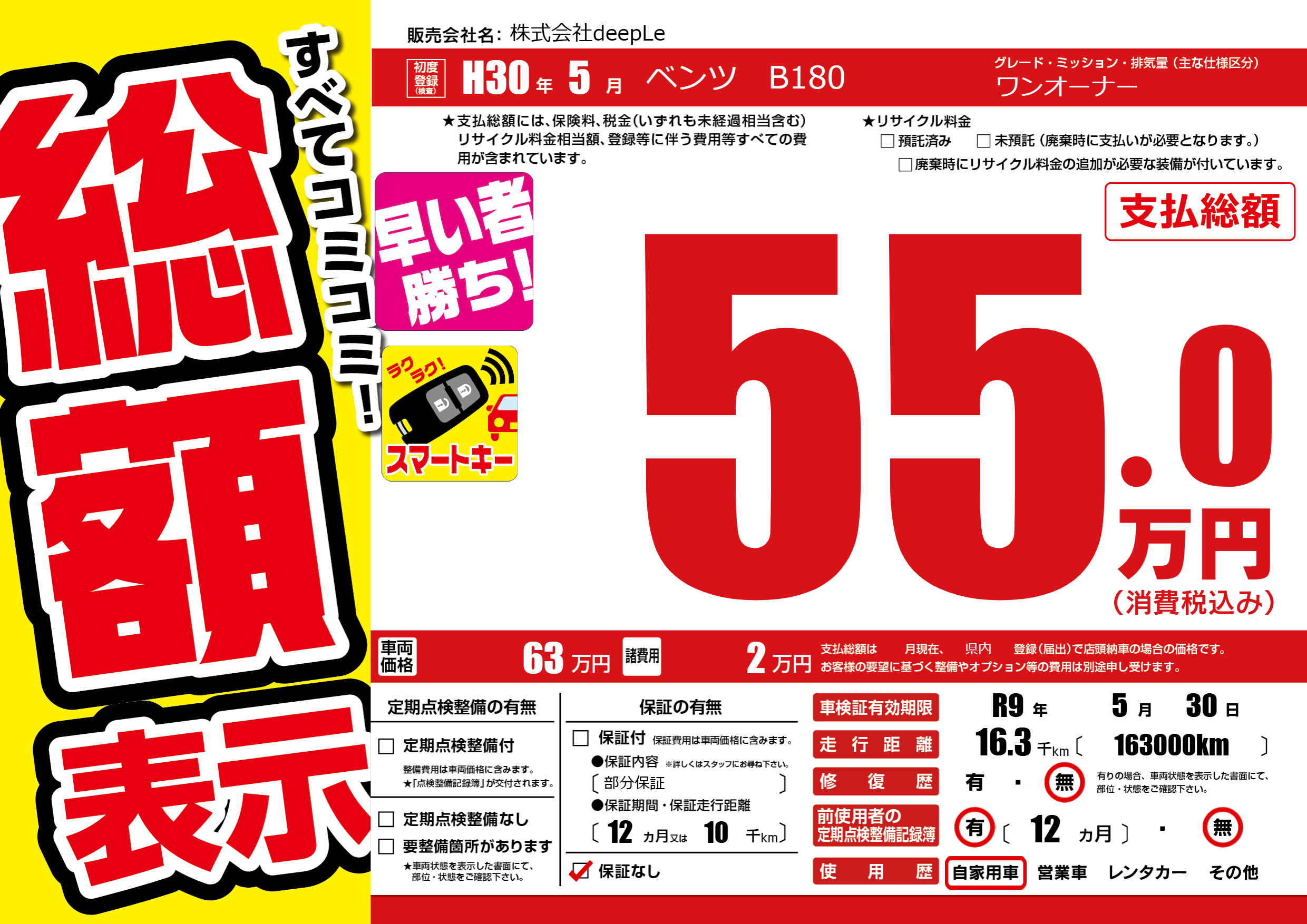 | 車名 | ベンツ B180 | グレード ミッション 排気量 |