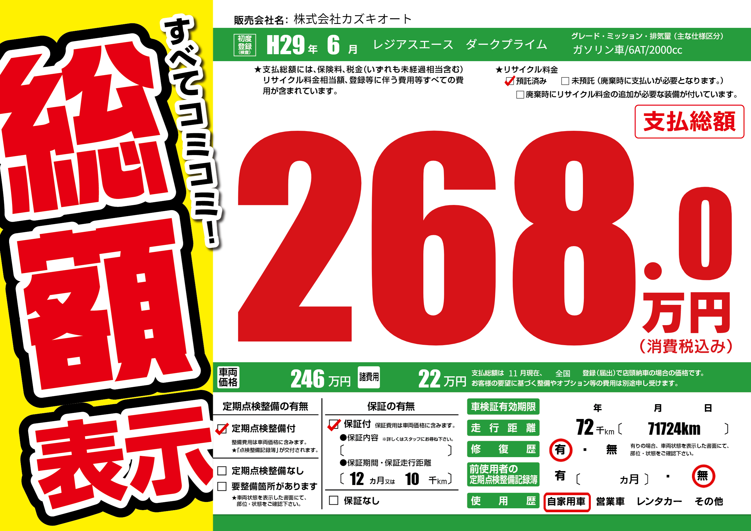 | 走行キロ | 7.2万km | 初年度登録 | H29年6月 |