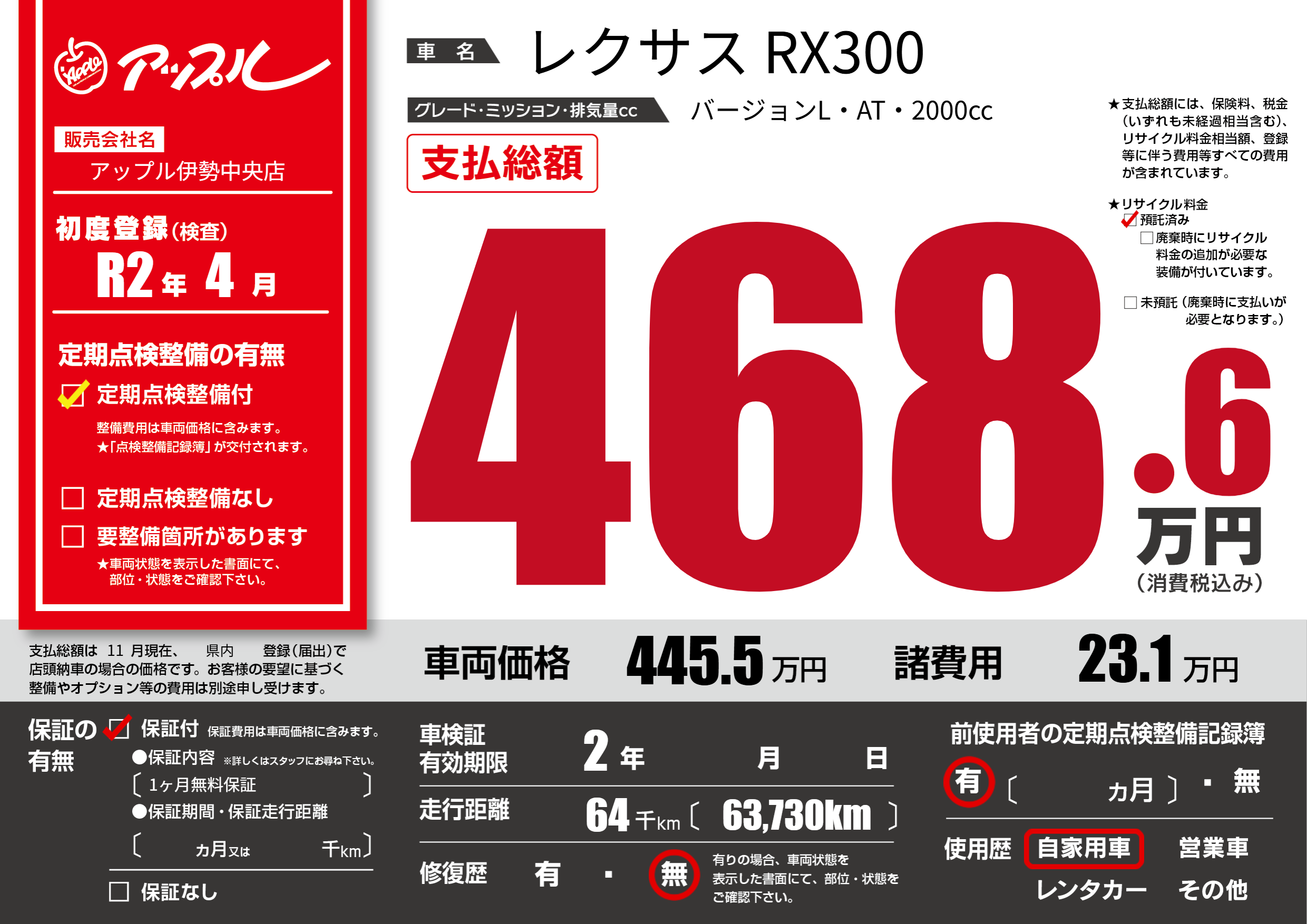 | 初年度登録 | R2年4月 | ||
