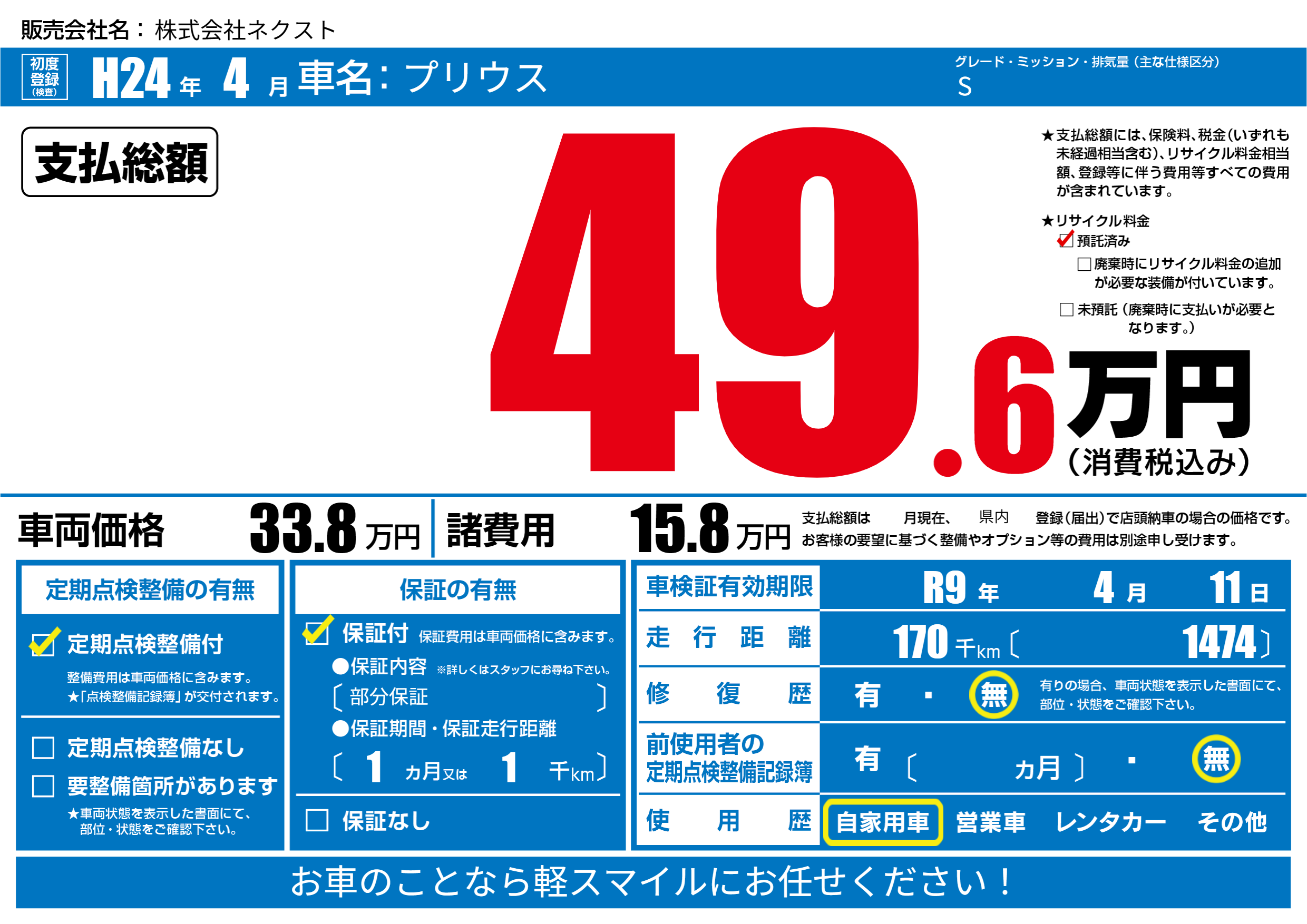 | 車名 | プリウス | グレード ミッション 排気量 |