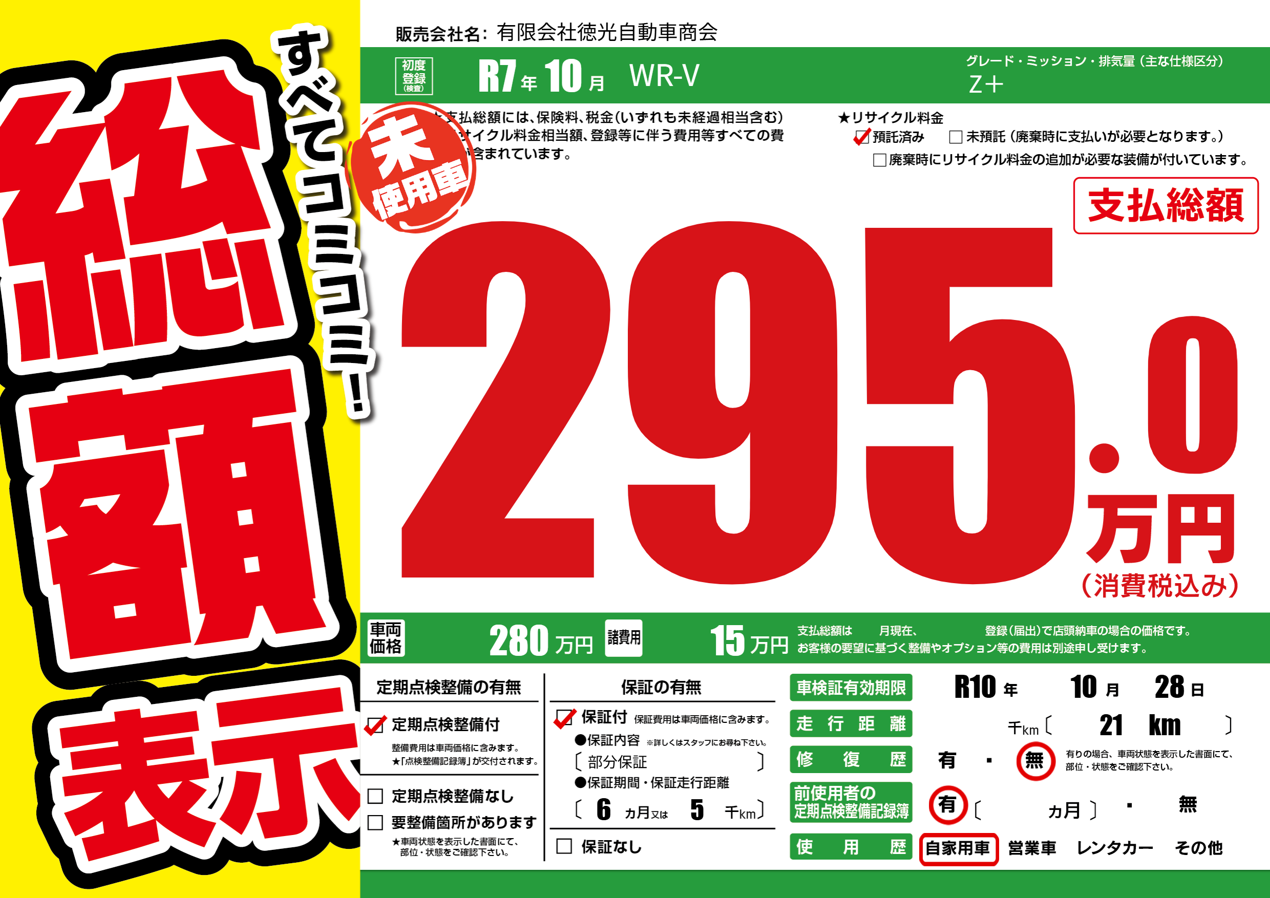 | 車名 | WR-V | グレード ミッション 排気量 |