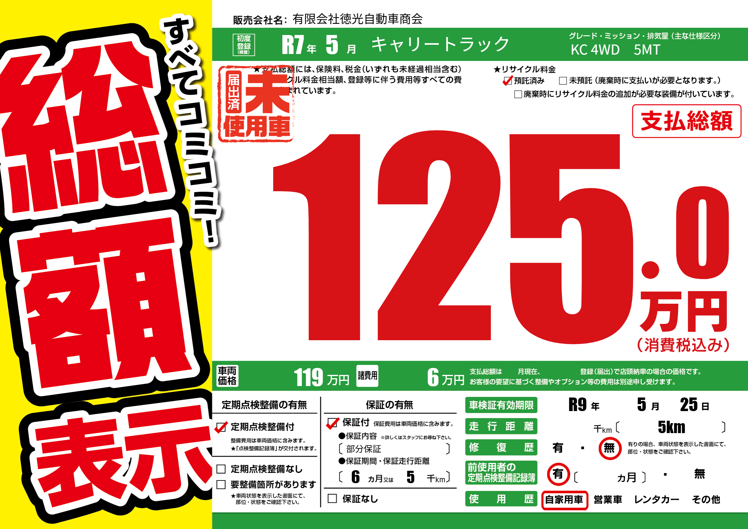 | 走行キロ | - | 初年度登録 | R7年5月 |