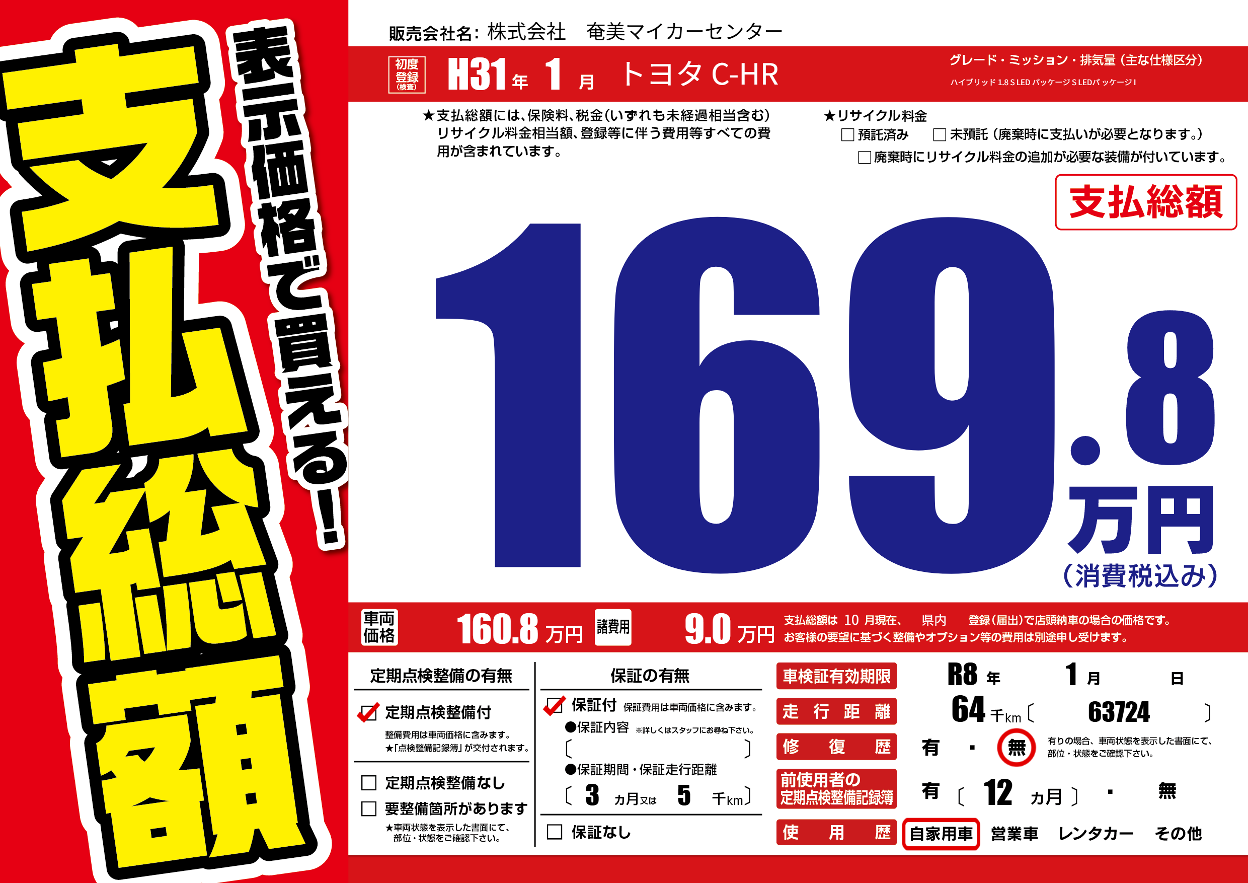| 車検制限 | R8年 1月 - 日 | ||