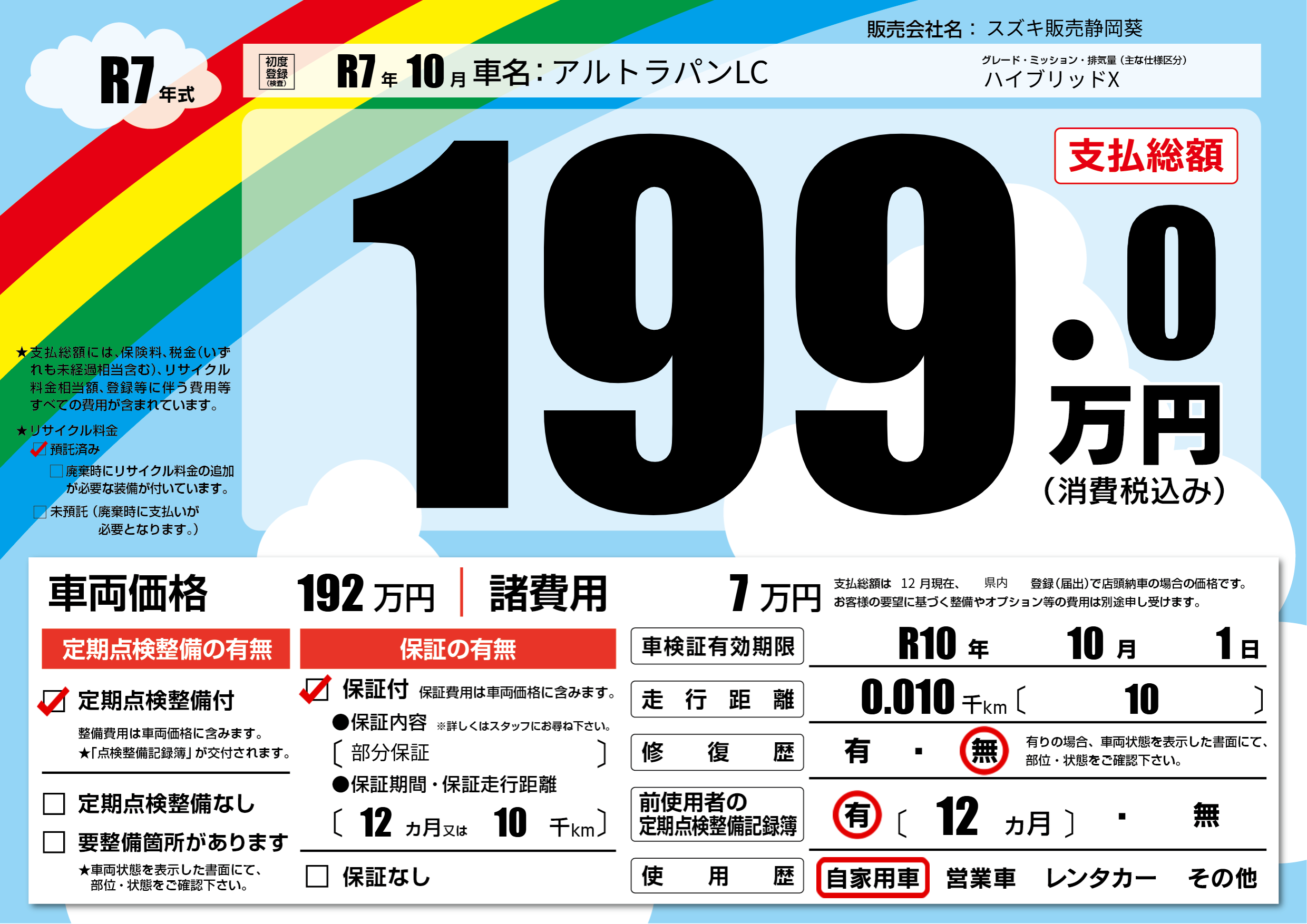 なし | 車検制限 | R10年10月1月 |