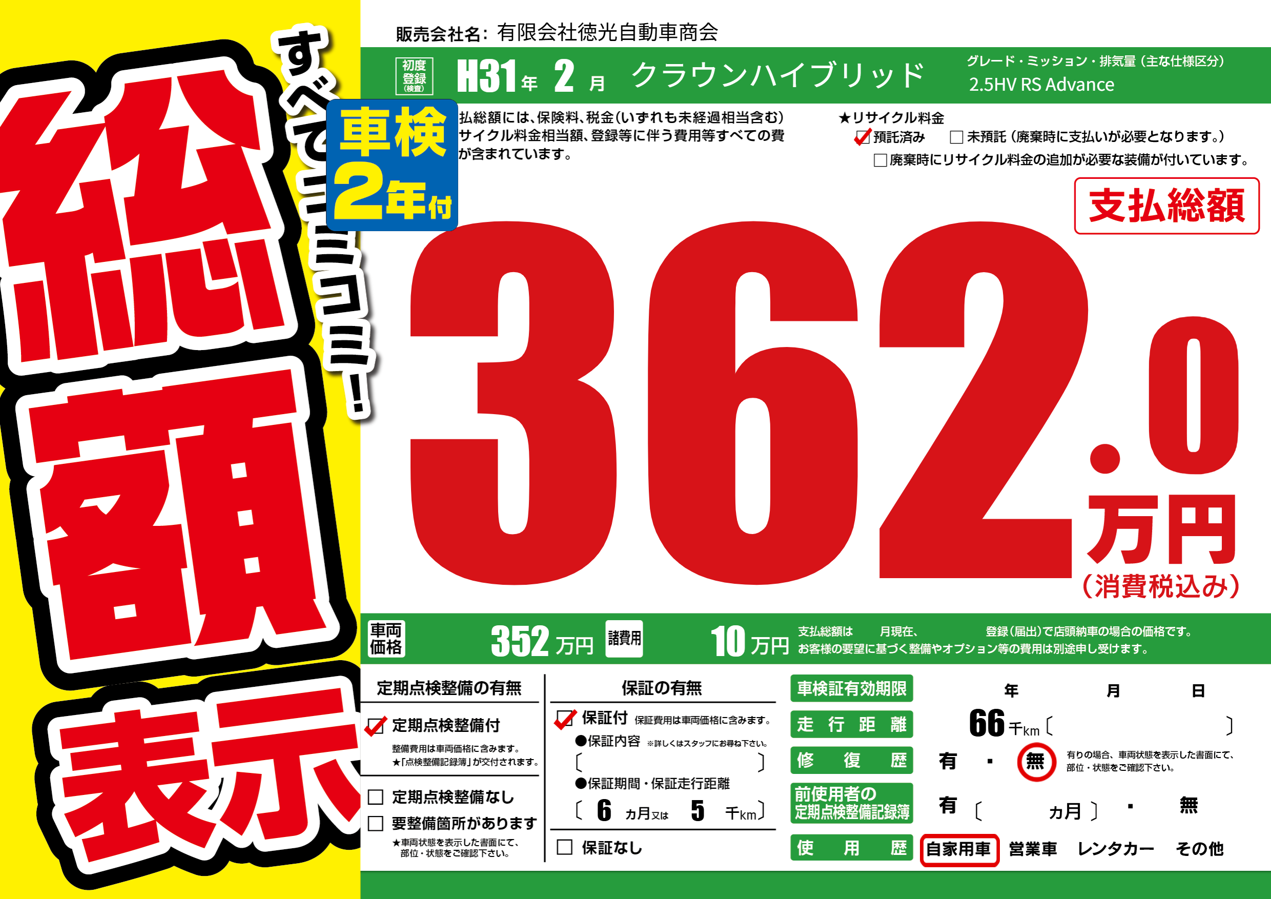 | 車名 | クラウンハイブリッド | グレード ミッション 排気量 |