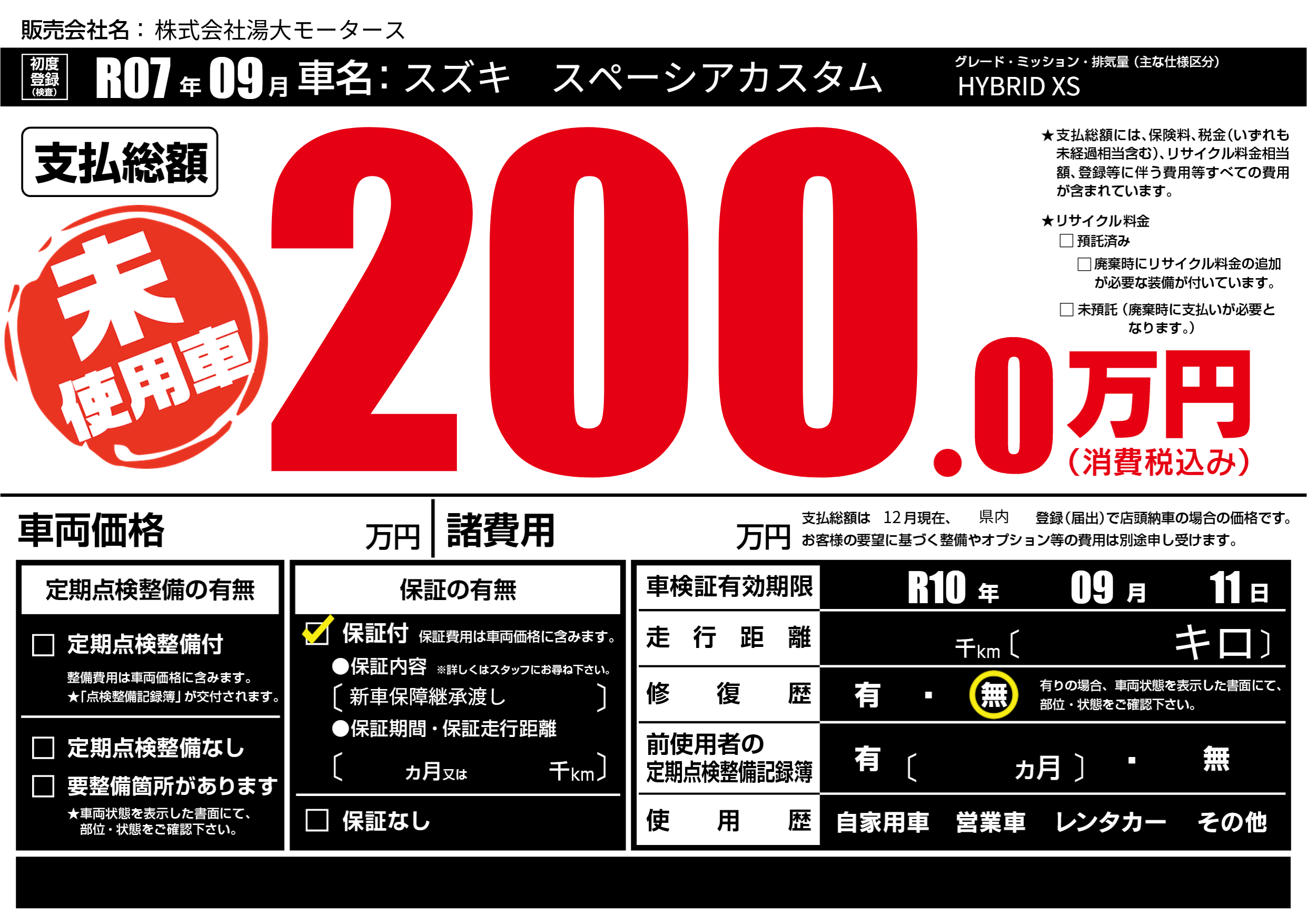 保証付き 保証内容(新車保障継承渡し) ---ヶ月または()千kmまで |
