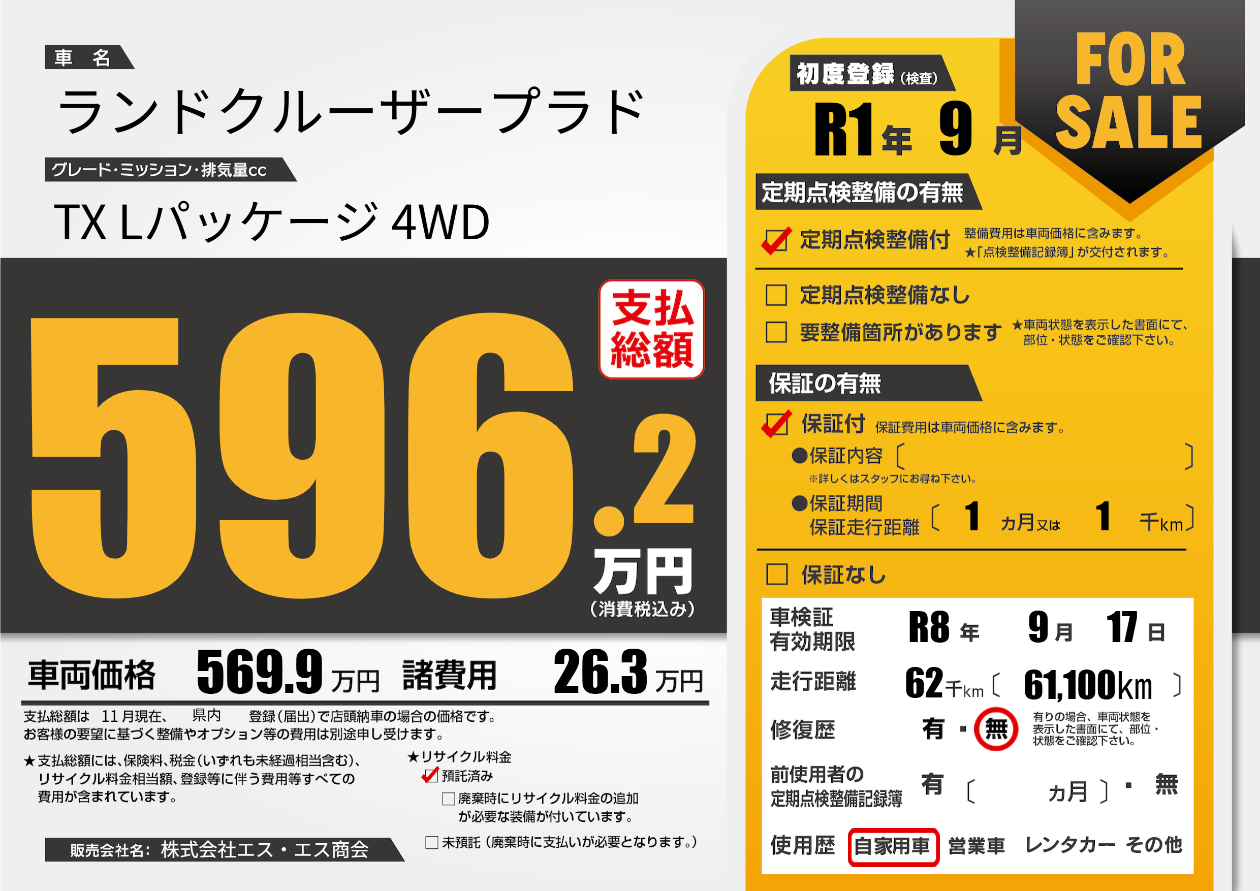 | 車名 | ランドクルーザープラド | グレード ミッション 排気量 |