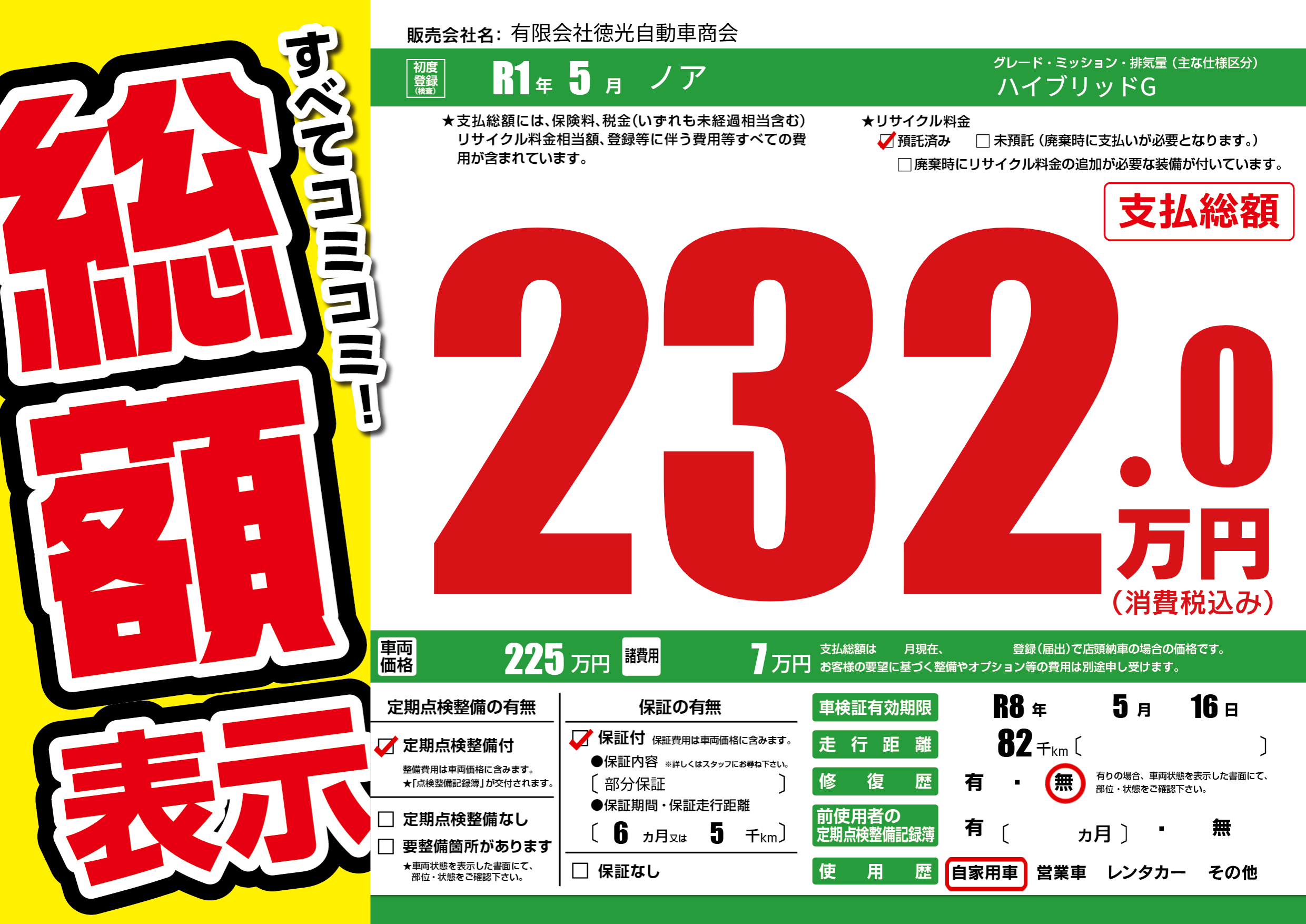 | 走行キロ | 8.2万km | 初年度登録 | R1年5月 |