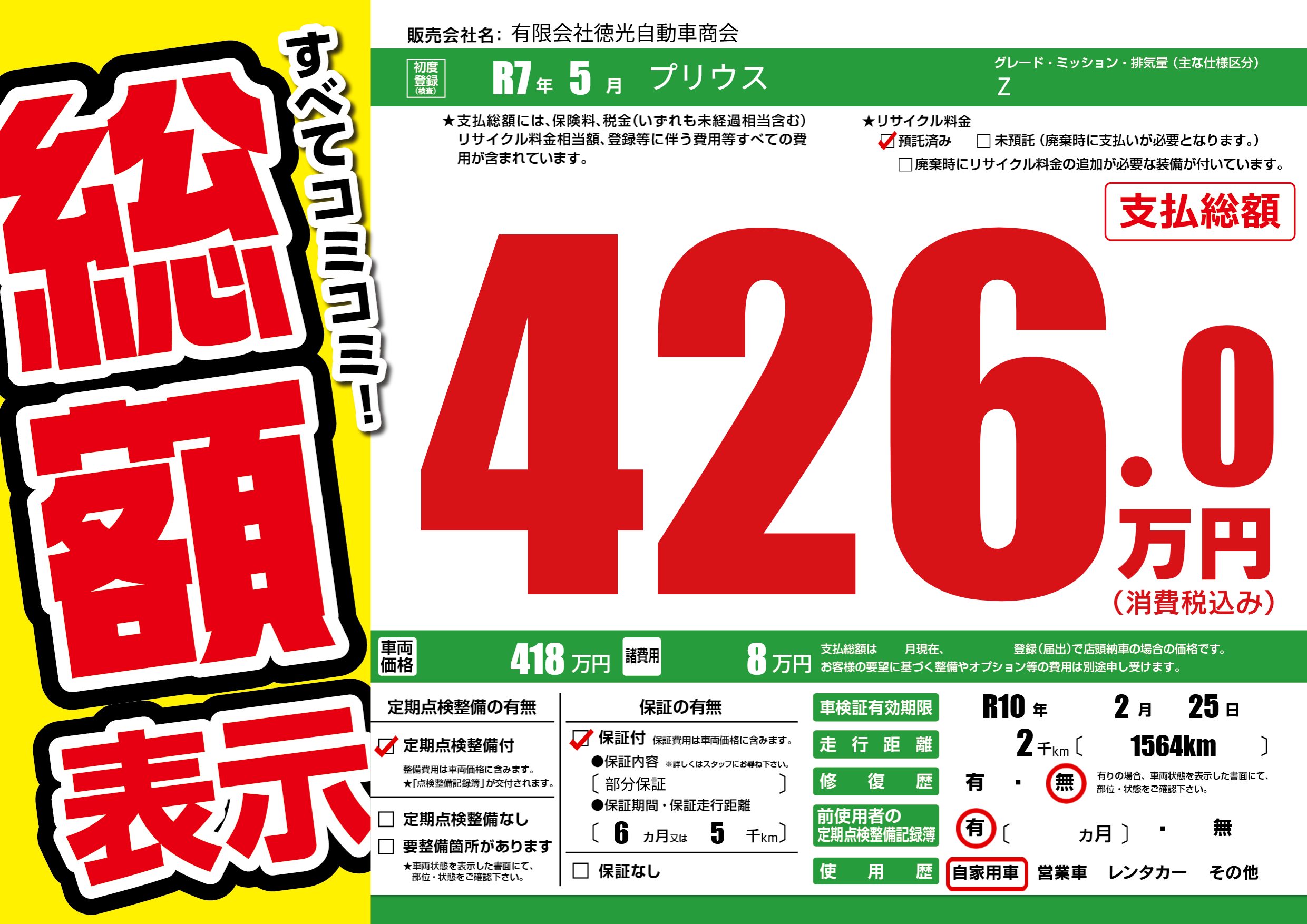 | 車名 | プリウス | グレード ミッション 排気量 |