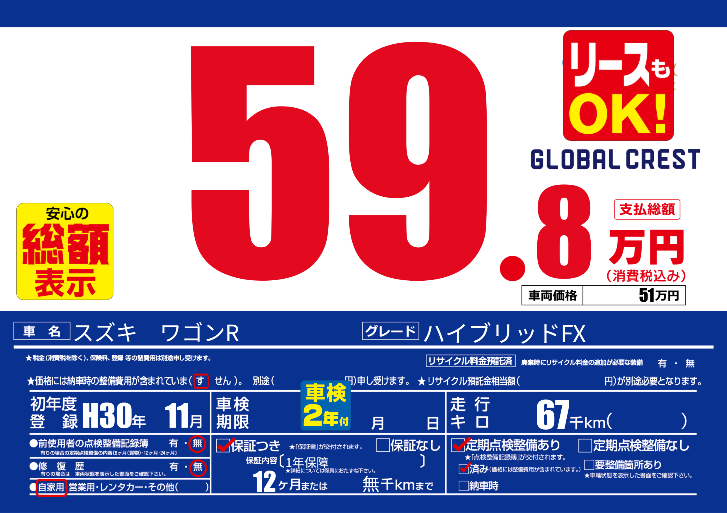 | 定期点検整備 | 定期点検整備あり 定期点検整備済み | ||