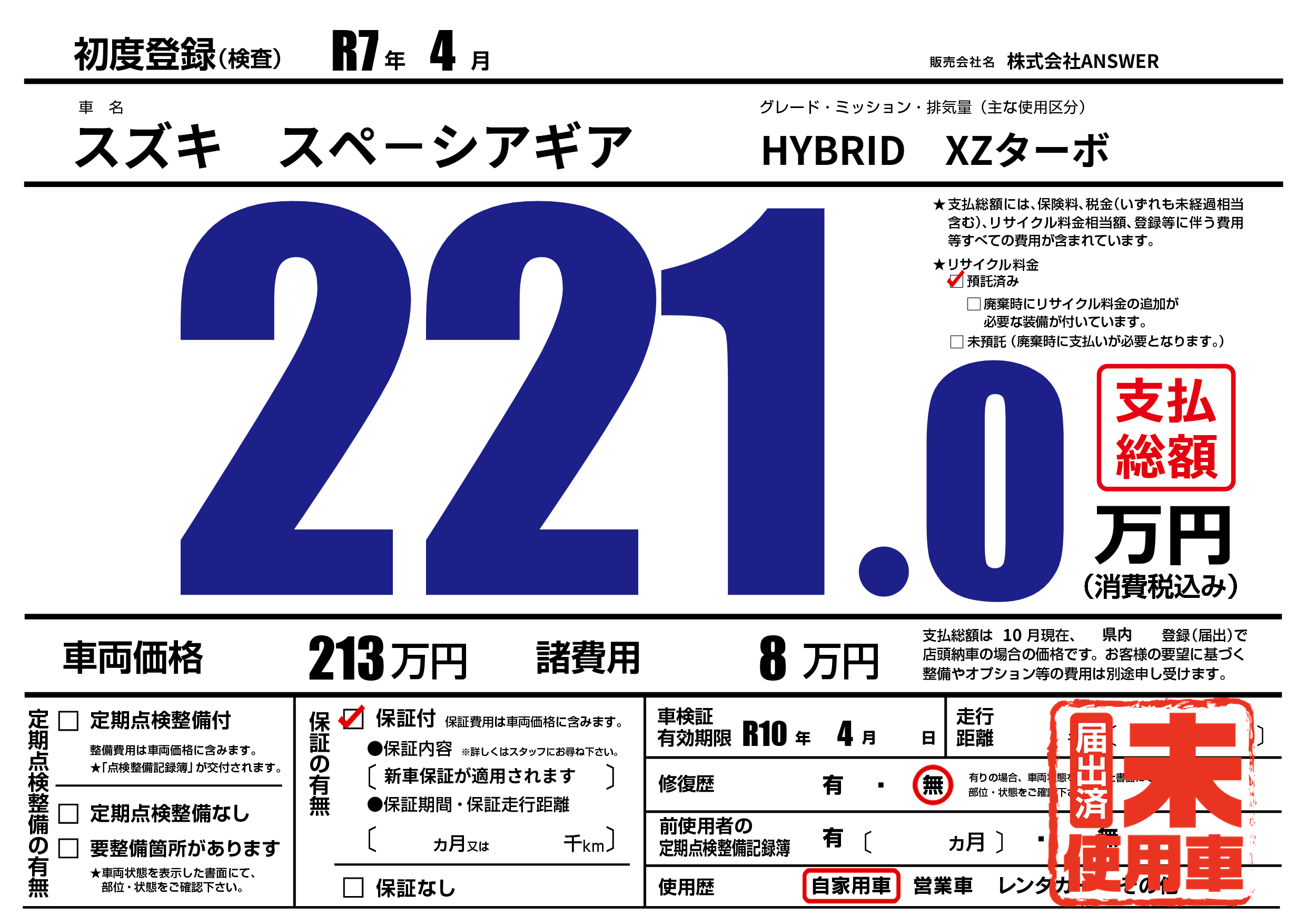 車検制限 R10年 4月 - 日