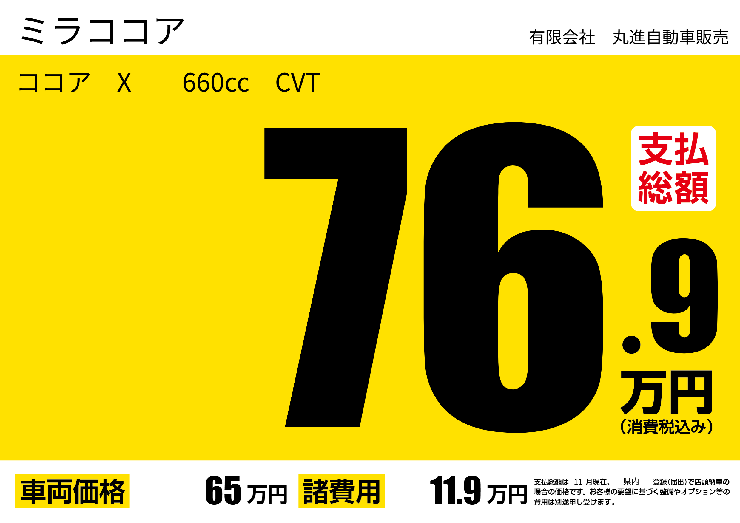 | 車名 | ミラココア | グレード ミッション 排気量 |