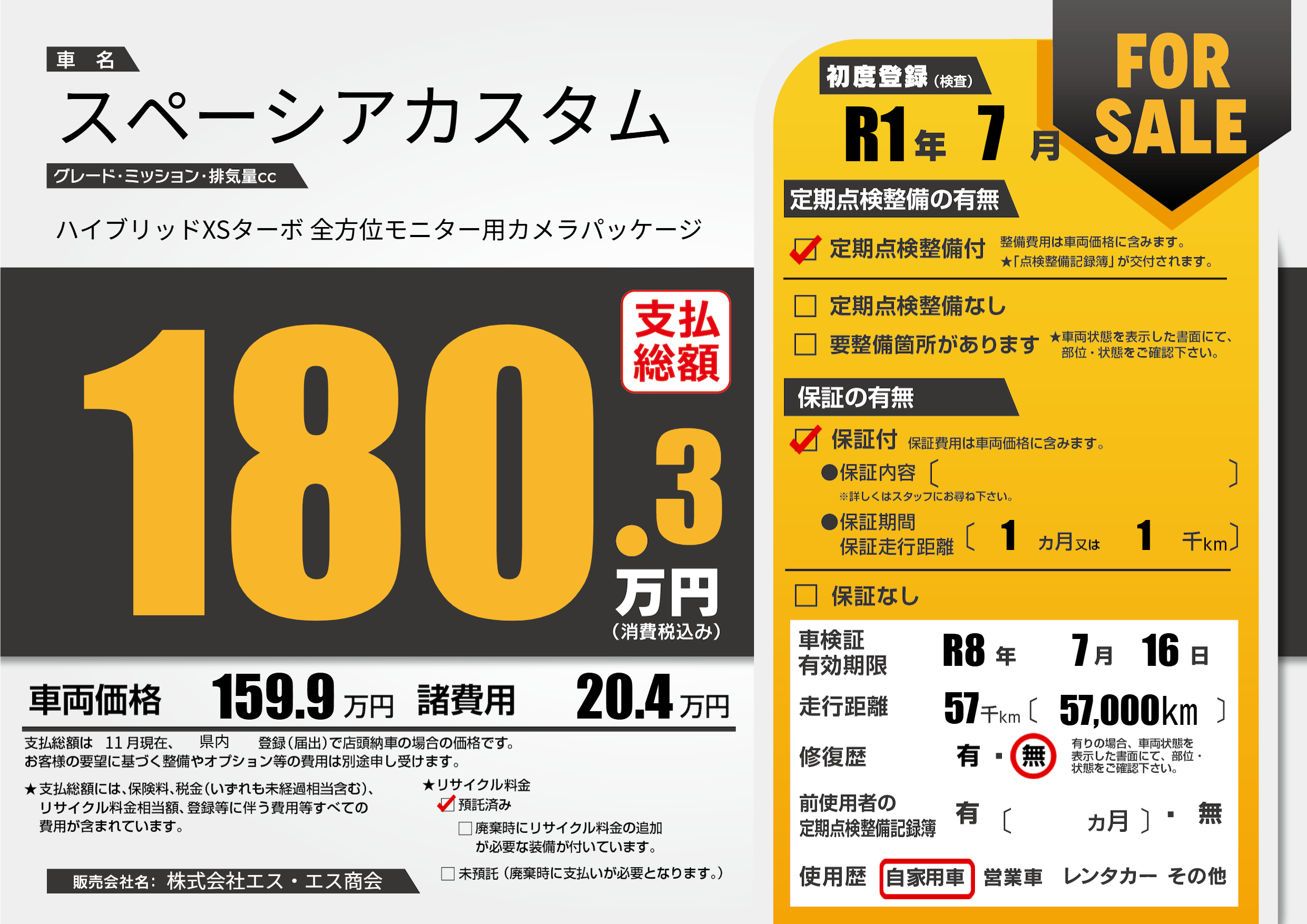 なし | 車検制限 | R8年7月16月 |