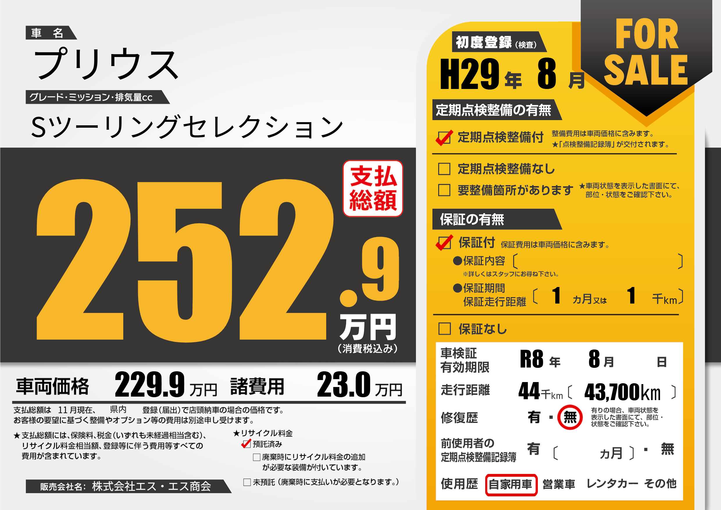 なし | 車検制限 | R8年8月---月 |