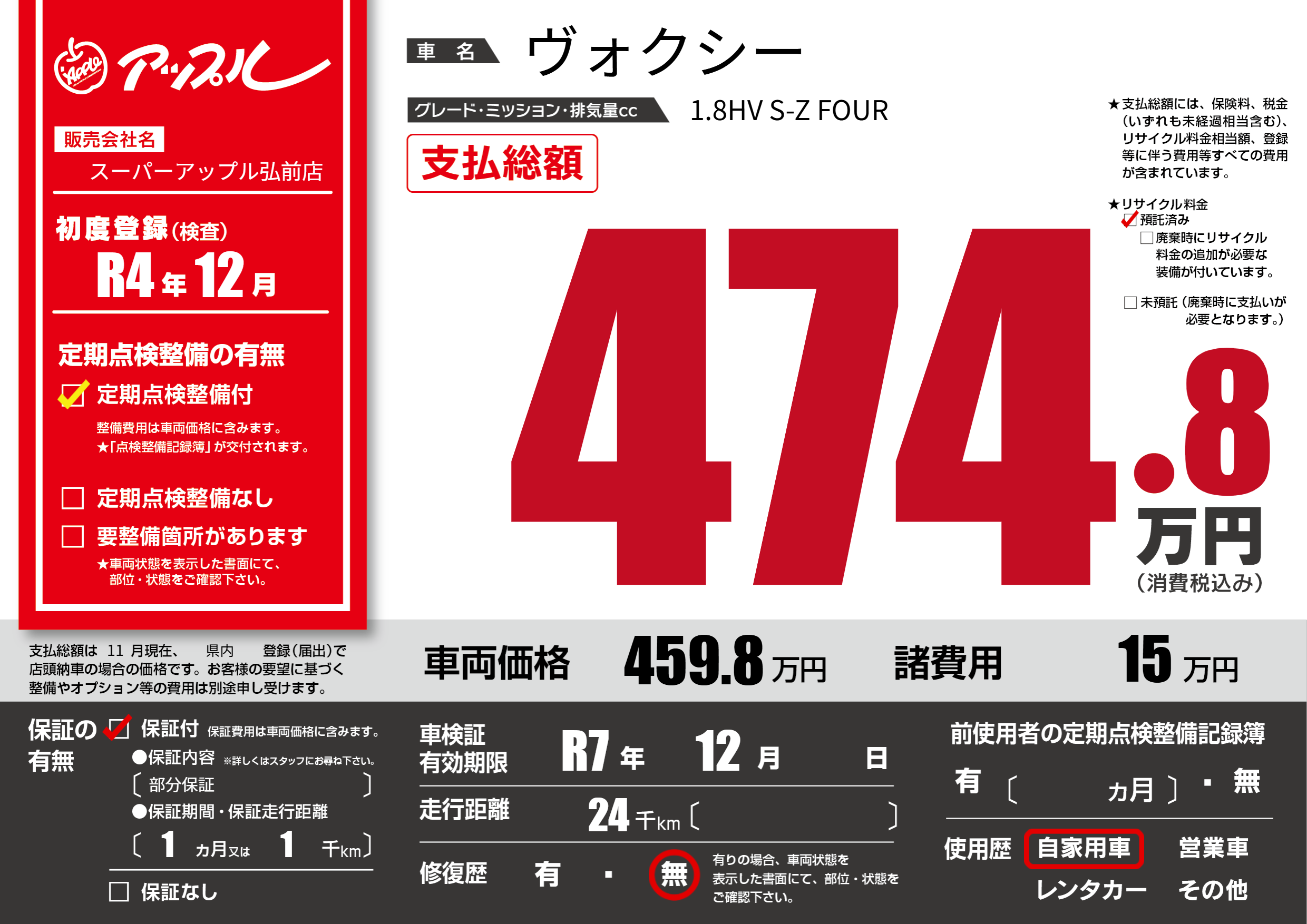 | 車検制限 | R7年 12月 - 日 | ||