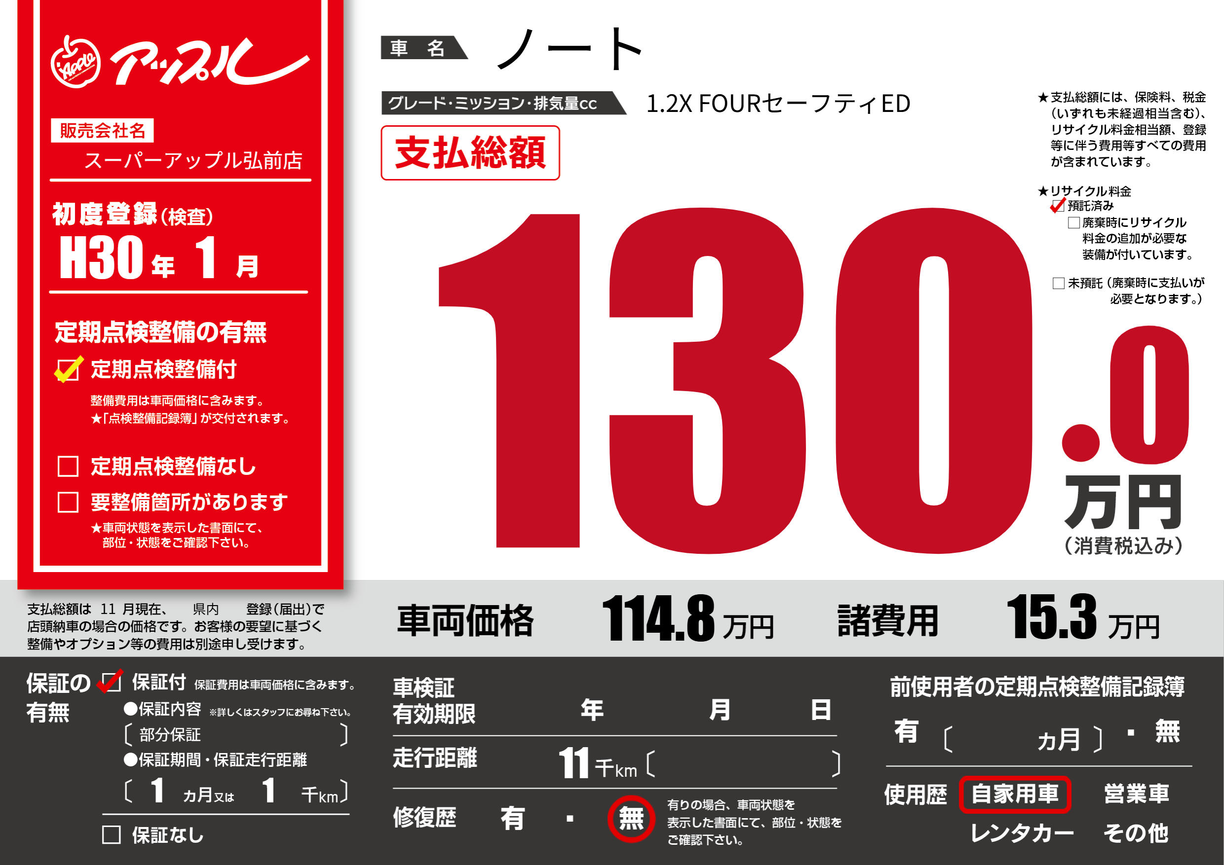 | 走行キロ | 1.1万km | 初年度登録 | H30年1月 |