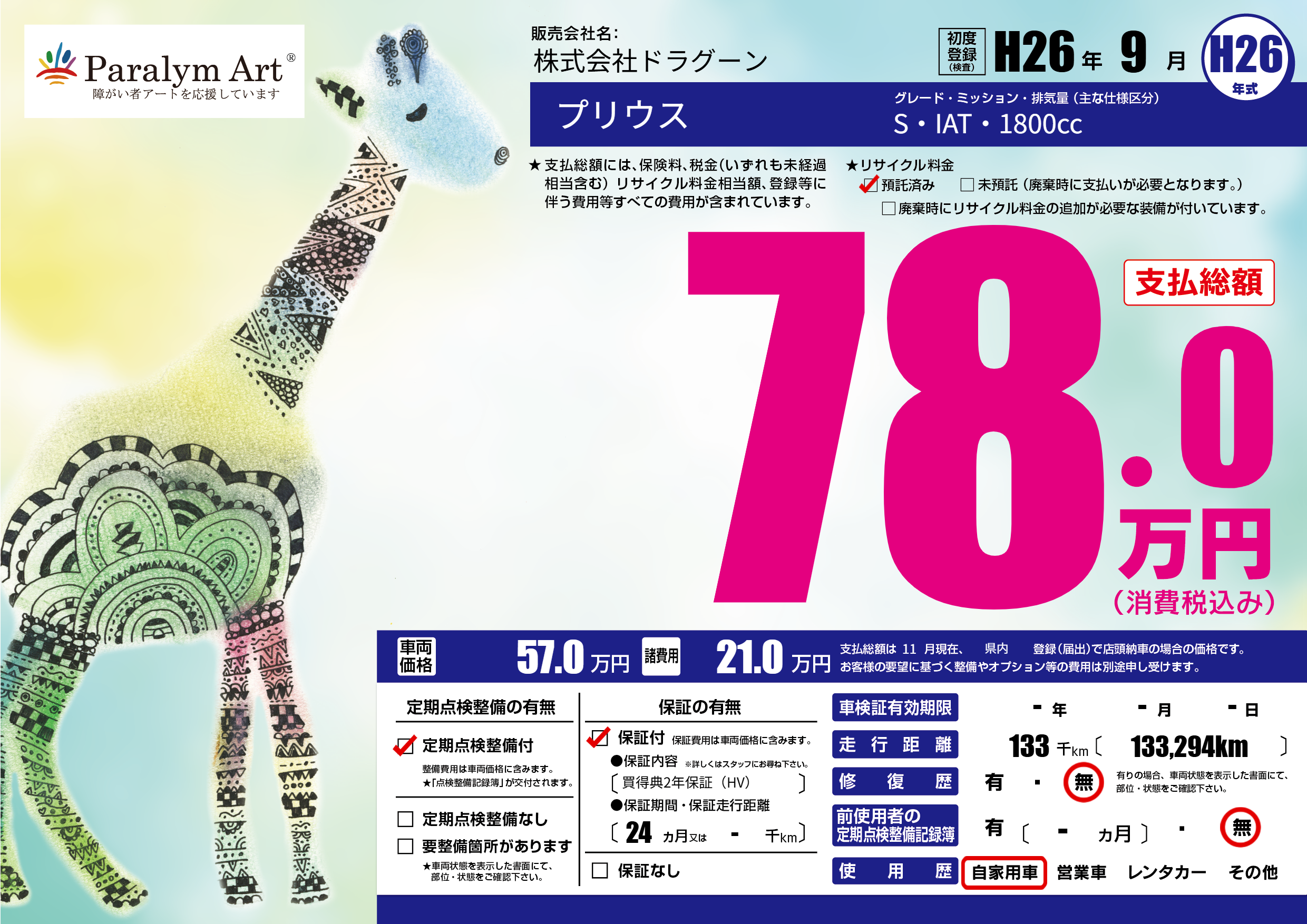 | 走行キロ | 13.3万km | ||