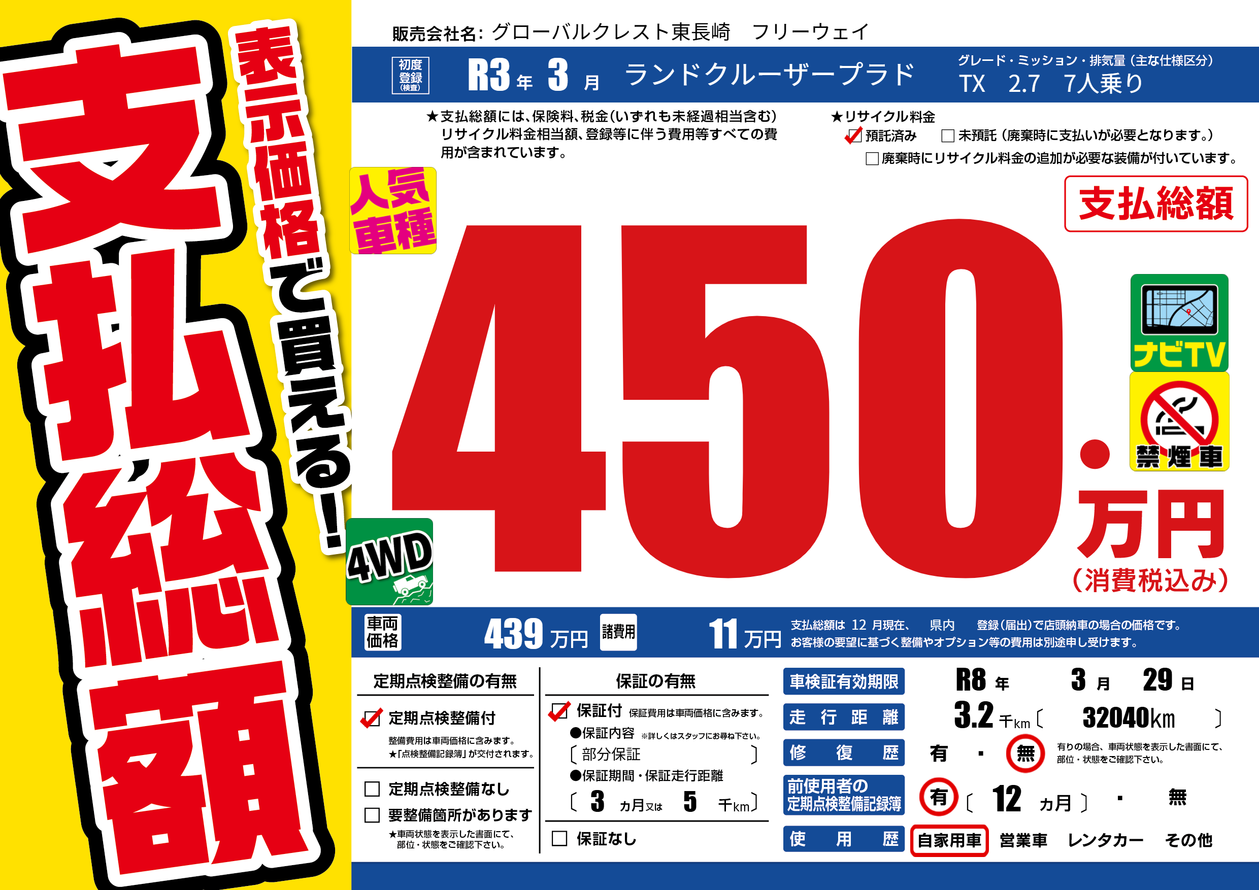 | 車名 | ランドクルーザープラド | グレード ミッション 排気量 |