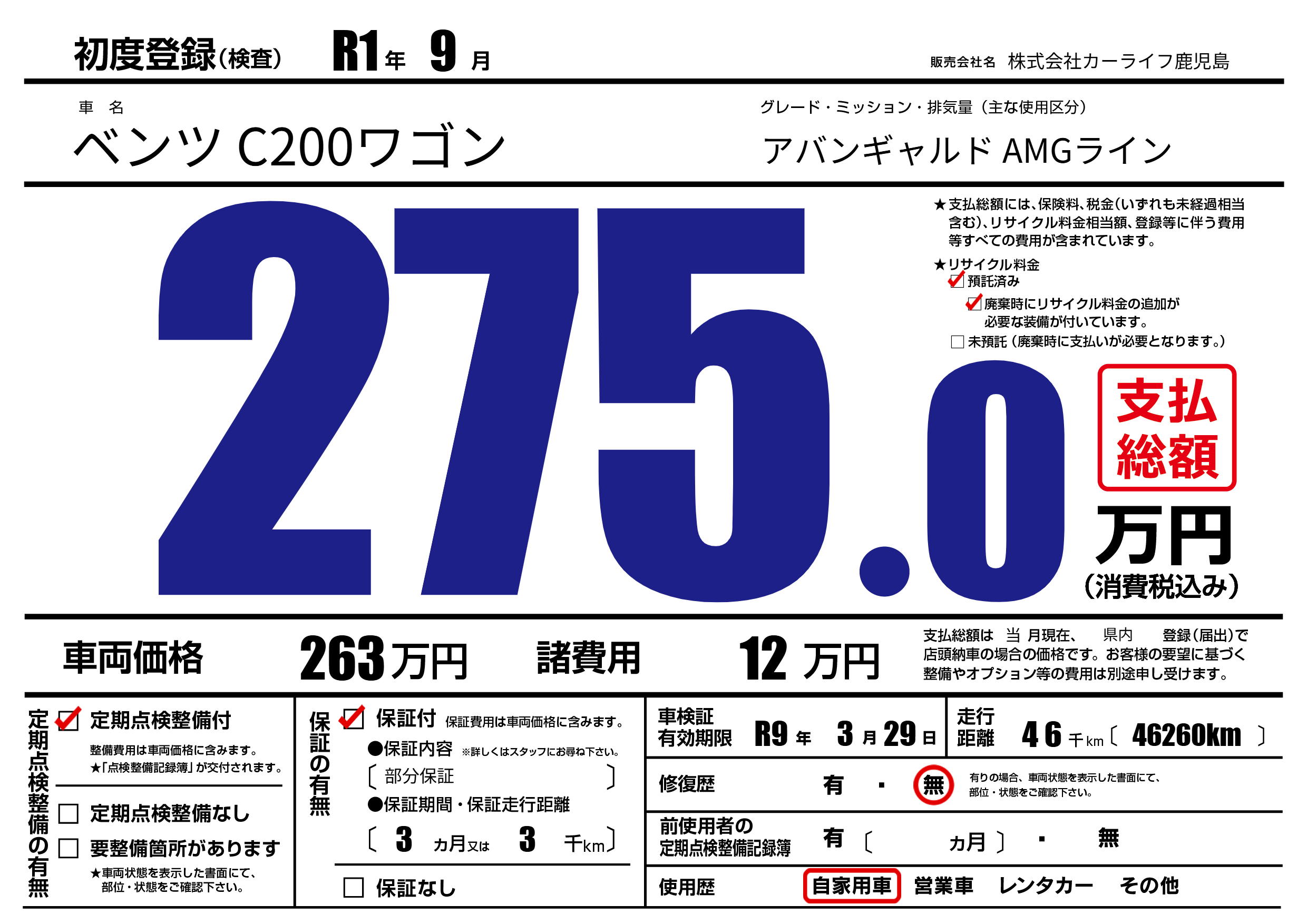 | 定期点検整備 | 定期点検整備あり | ||