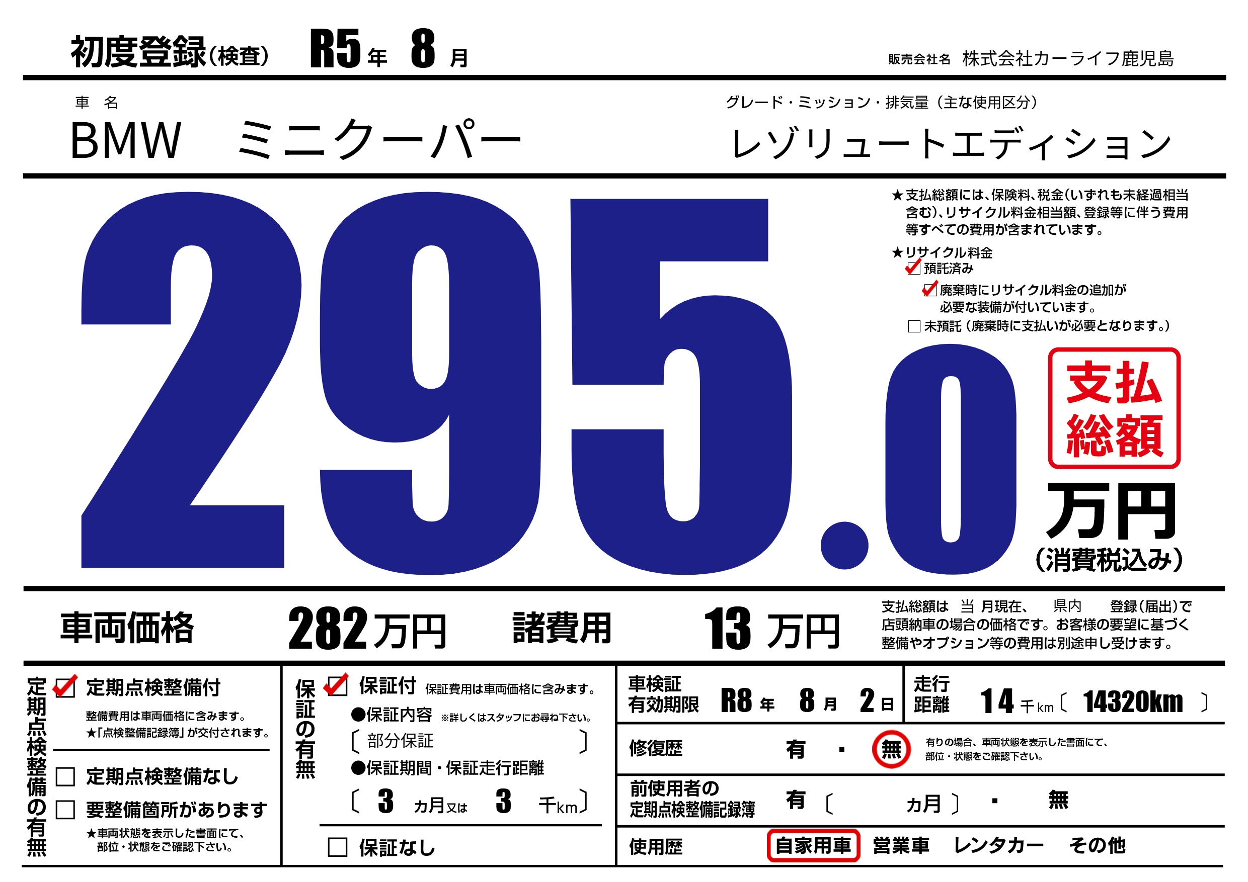 | 定期点検整備 | 定期点検整備あり | ||