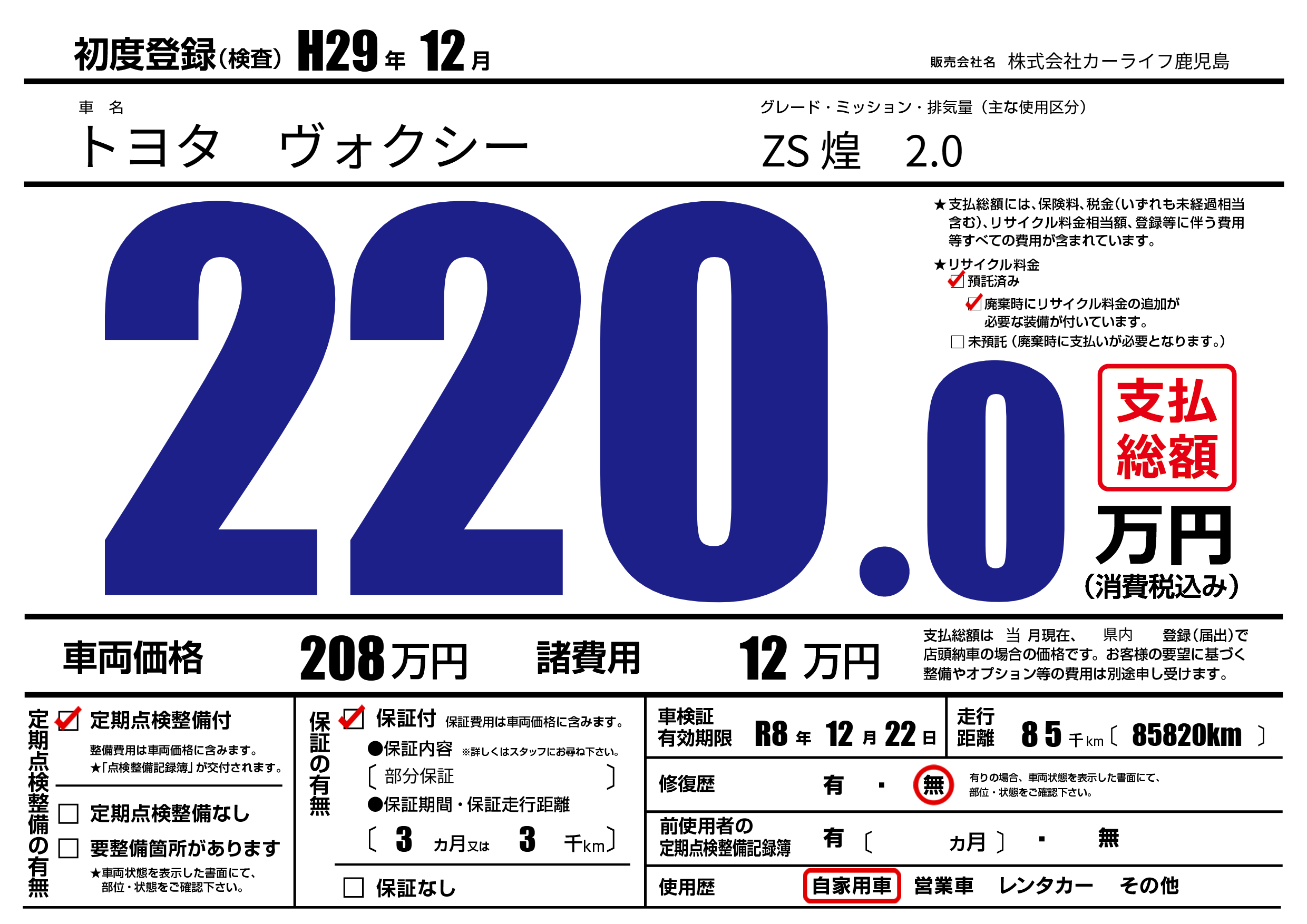 | 車検制限 | R8年 12月 22日 | ||