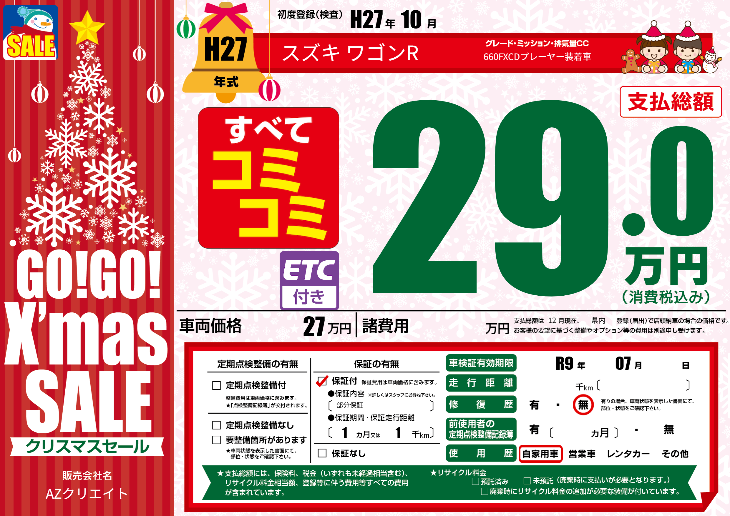 | 車検制限 | R9年 07月 - 日 | ||