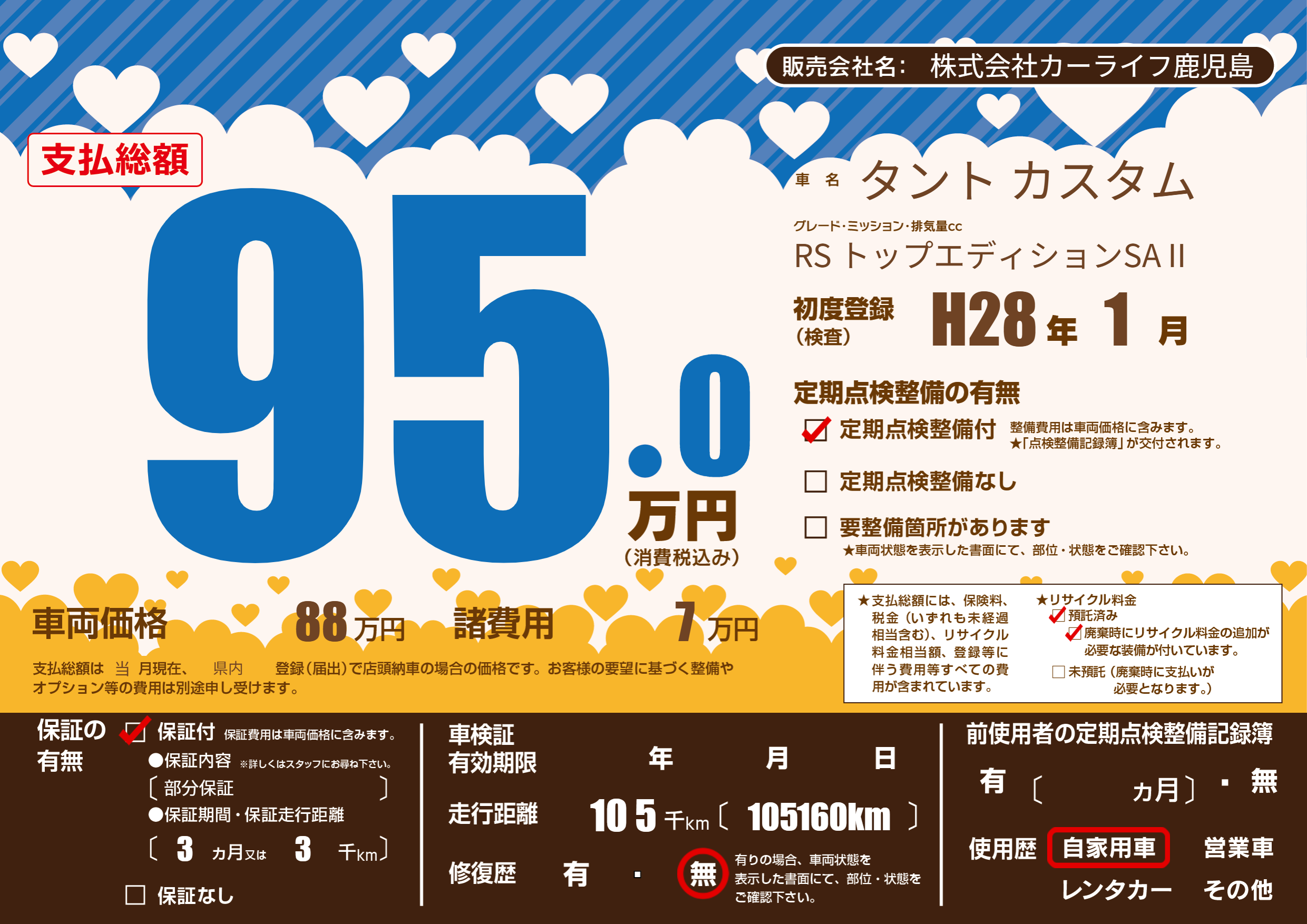 | 車名 | タント カスタム | グレード ミッション 排気量 |