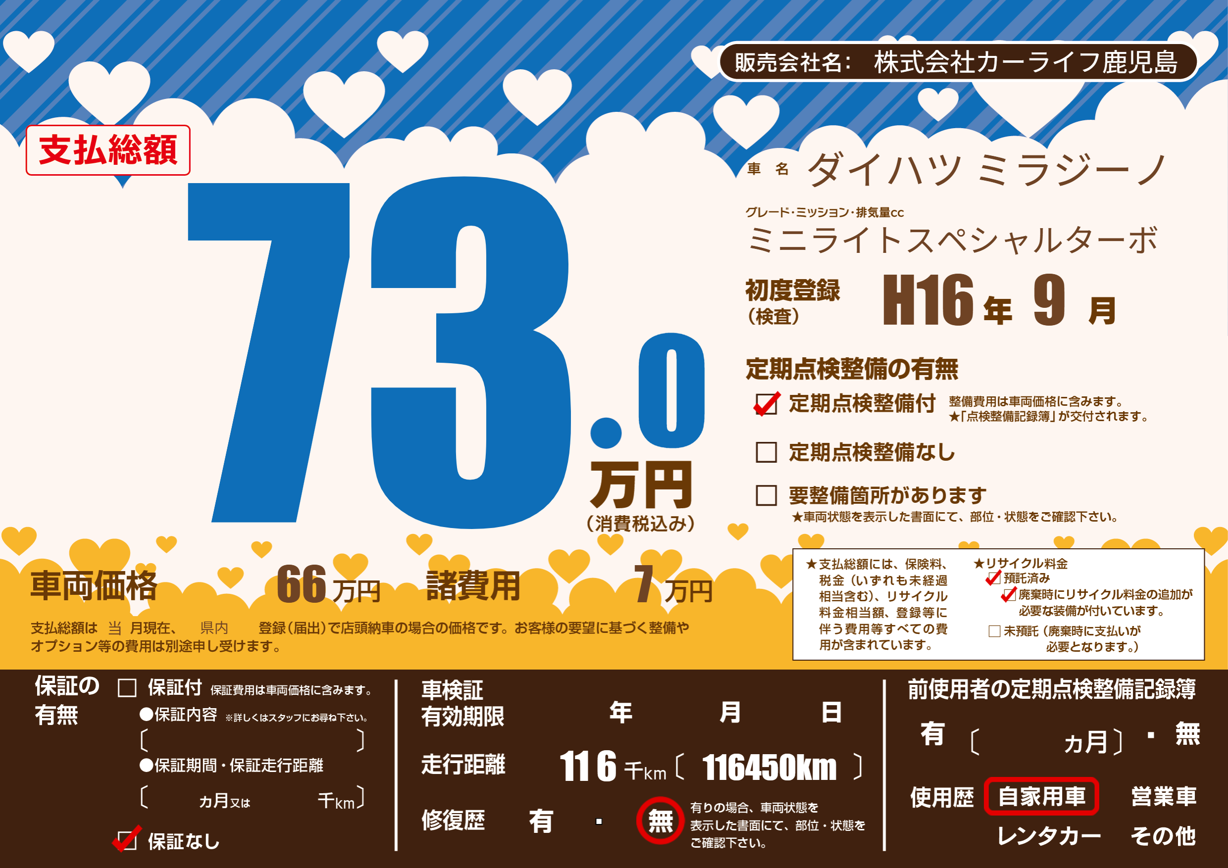 | 定期点検整備 | 定期点検整備あり | ||