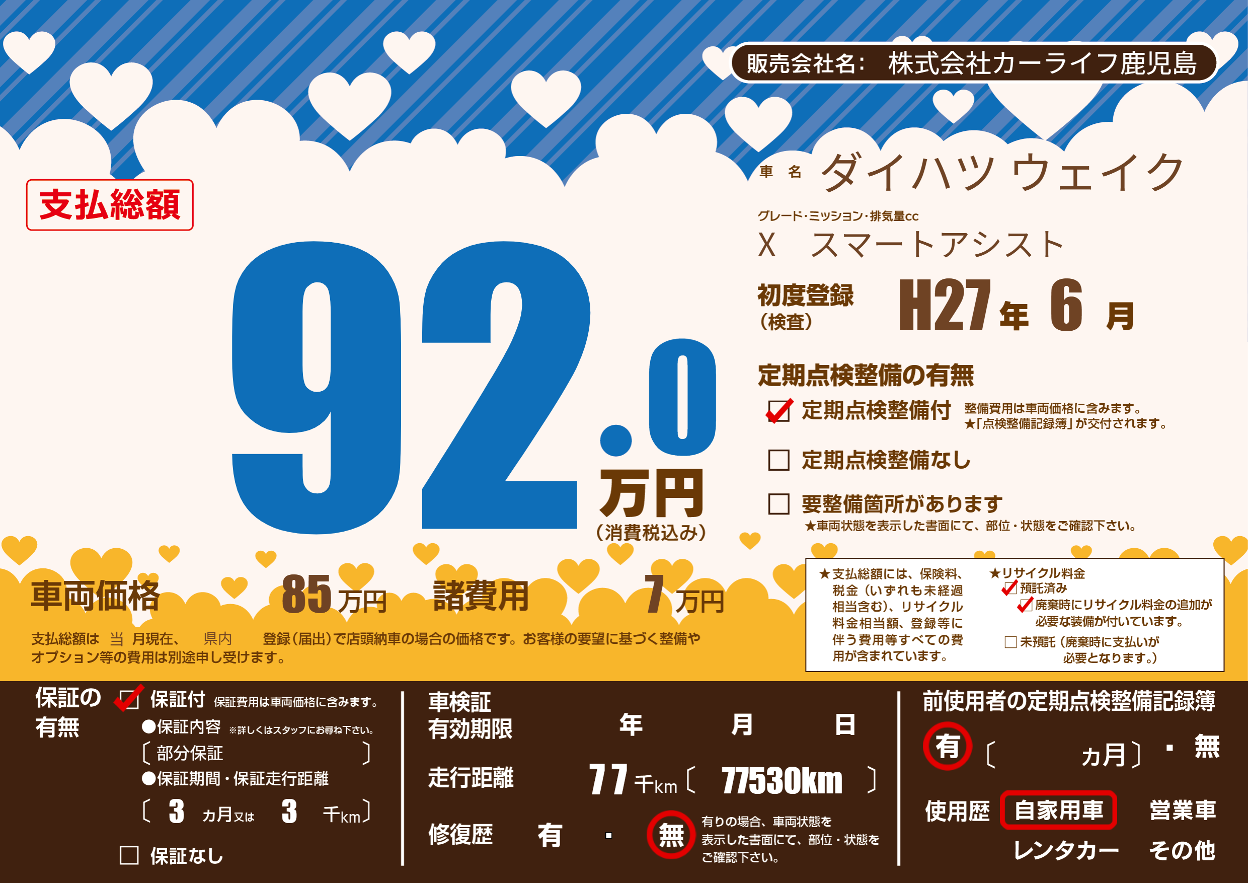 | 定期点検整備 | 定期点検整備あり | ||